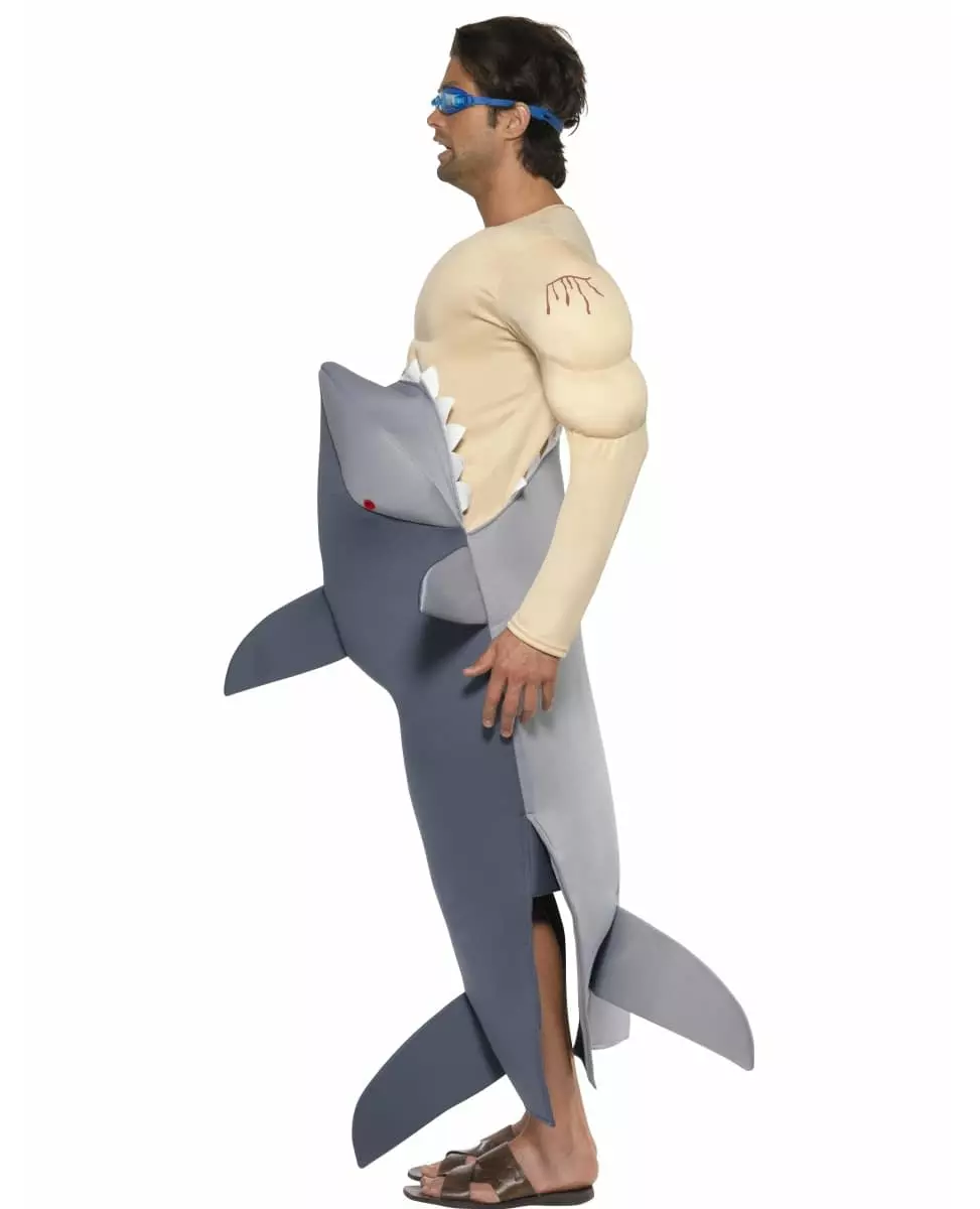Se opp, den kommer tilbake! Supert Jaws-kostyme for menn, antrekk inkludert beige topp, dykkerbriller og vattert hai. Morsomt å kle seg ut på utkledningsfester. Inkludert tilbehør: Topphai-briller Materiale: 100 % polyester Vedlikehold: Håndvask
