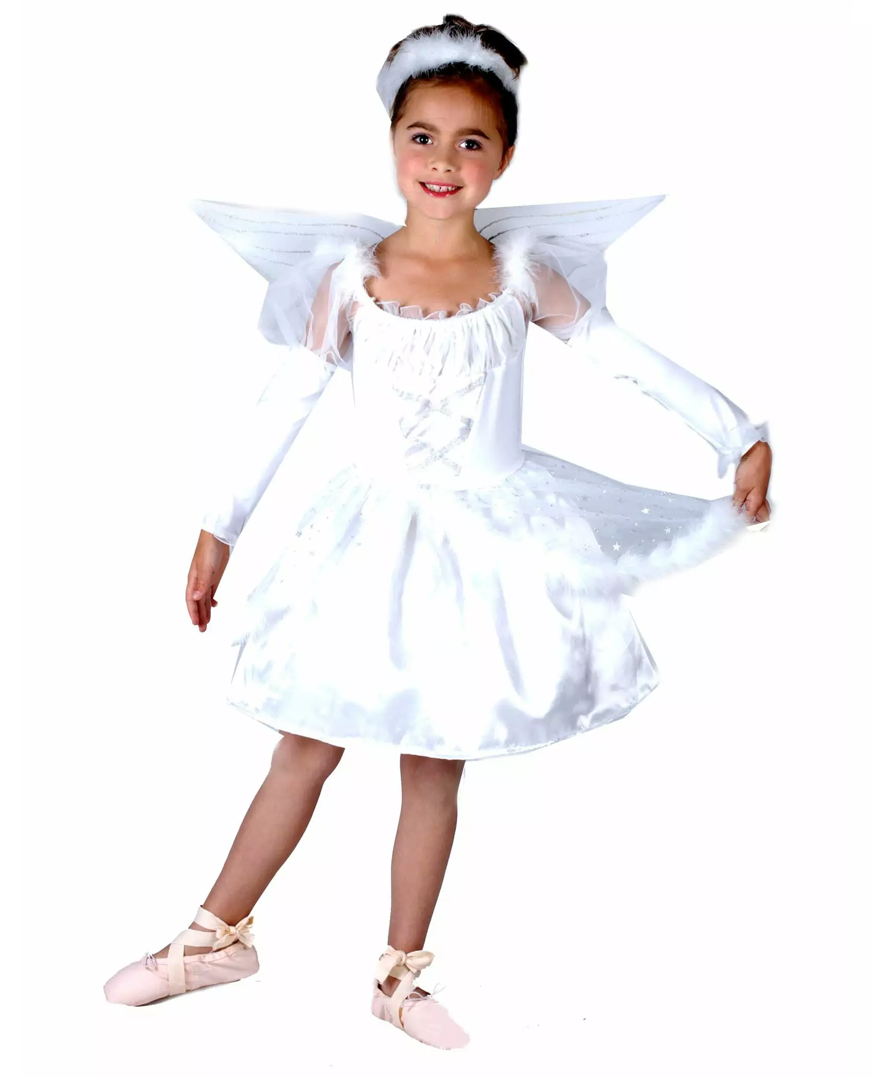 Inkluderer paljettbesatte vinger! Dette hvite engelkostymet for jenter består av en satengkjole med veldig pene overflater, fjærkledde stropper og en sølvkantet halsutringning. Antrekket inkluderer også et par paljettbesatte vinger som glir på som en ryggsekk, samt en hvit fjærkrone. Dette kostymet vil gjøre barnet ditt til den vakreste engelen på karneval, et show eller enhver annen utkledningsanledning. Inkludert tilbehør: Kjole Vinger Krone Materiale: 100 % polyester Vedlikehold: Renseri