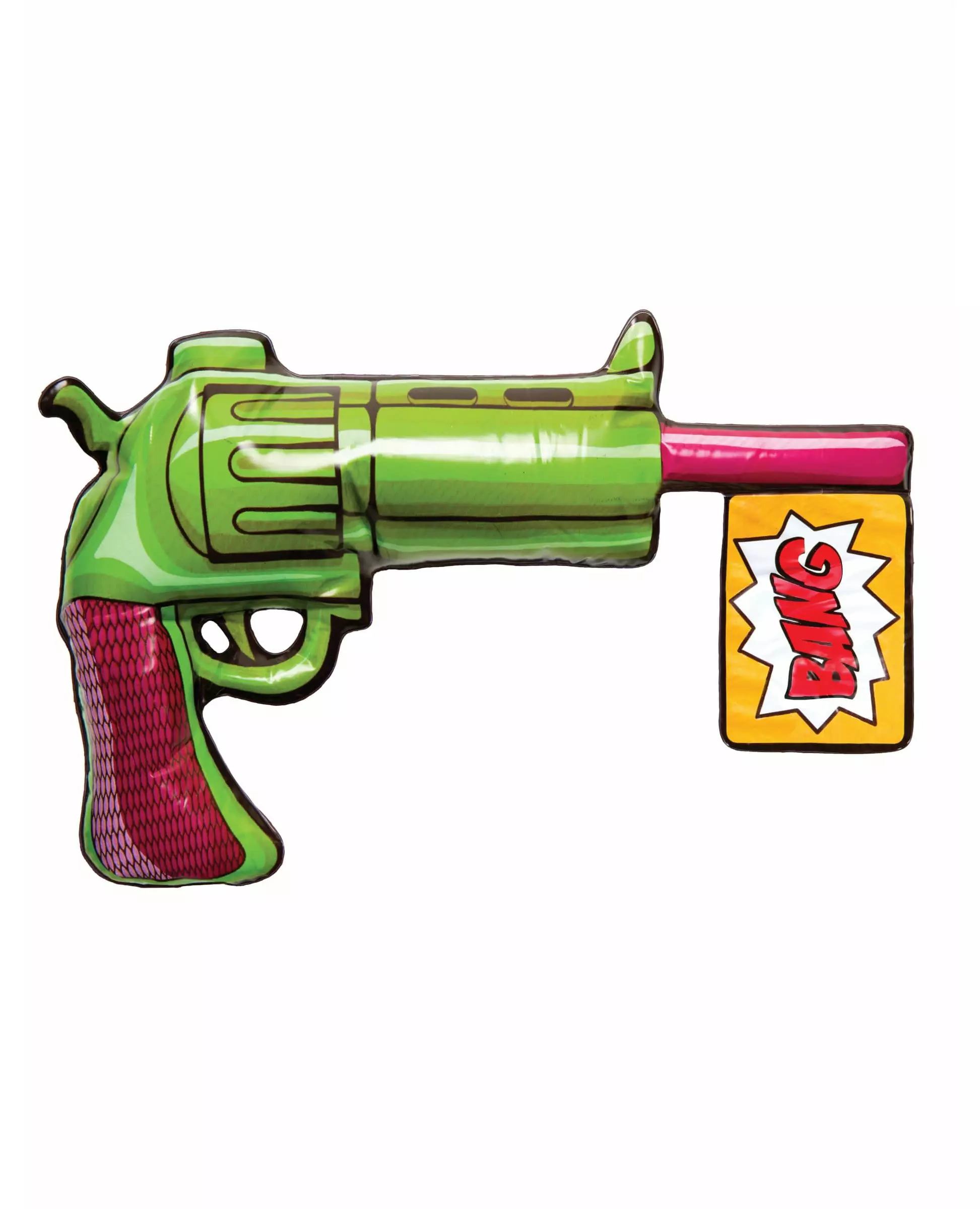 Joker™ oppblåsbar pistol Skyt som Jokeren med denne oppblåsbare pistolen. Denne oppblåsbare Joker™-pistolen er offisielt lisensiert. Den er grønn, i tegneseriestil.