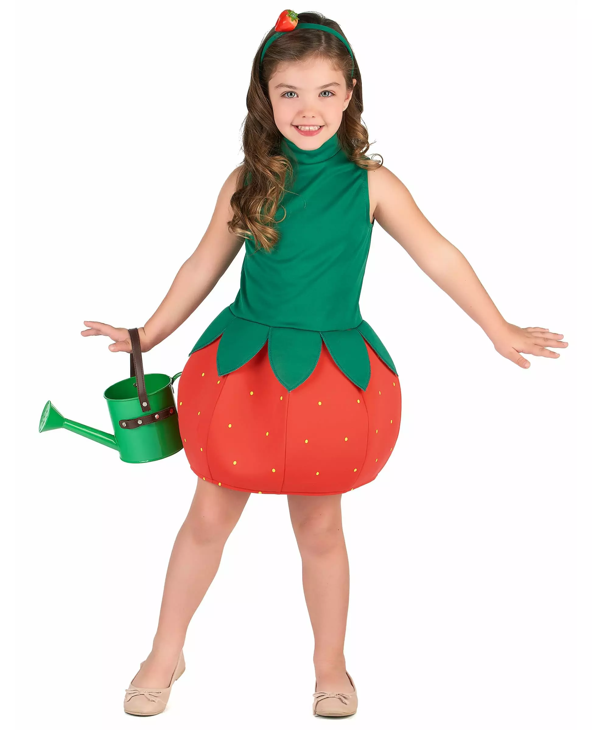 Tagada! Dette jordbærkostymet for jenter består av en kjole med glidelås bak og et pannebånd (vannkanne og sko er ikke inkludert). Originaliteten til dette kostymet ligger i kuleformen fra livet. Det halvstive skummet sikrer en perfekt passform! Den ermeløse øvre delen i mykt stoff kler elegant bysten og avsluttes i en tettsittende krage i halsen. Plastpannebåndet er dekket med grønt stoff som den øvre delen av kjolen. Et pent jordbær laget av plast topper hodeplagget som vil dekorere alle frisyrene dine perfekt. Dette jordbærkostymet vil være perfekt for en frukt- og grønnsakstema-utkledningsfest eller til karneval. Inkludert tilbehør: Kjolepannebånd Materiale: 100 % polyester 100 % polyester 100 % polyester 100 % polyester 100 % polyester 100 % polyester Pleie: Håndvask Målinformasjon: frukt, frukt
