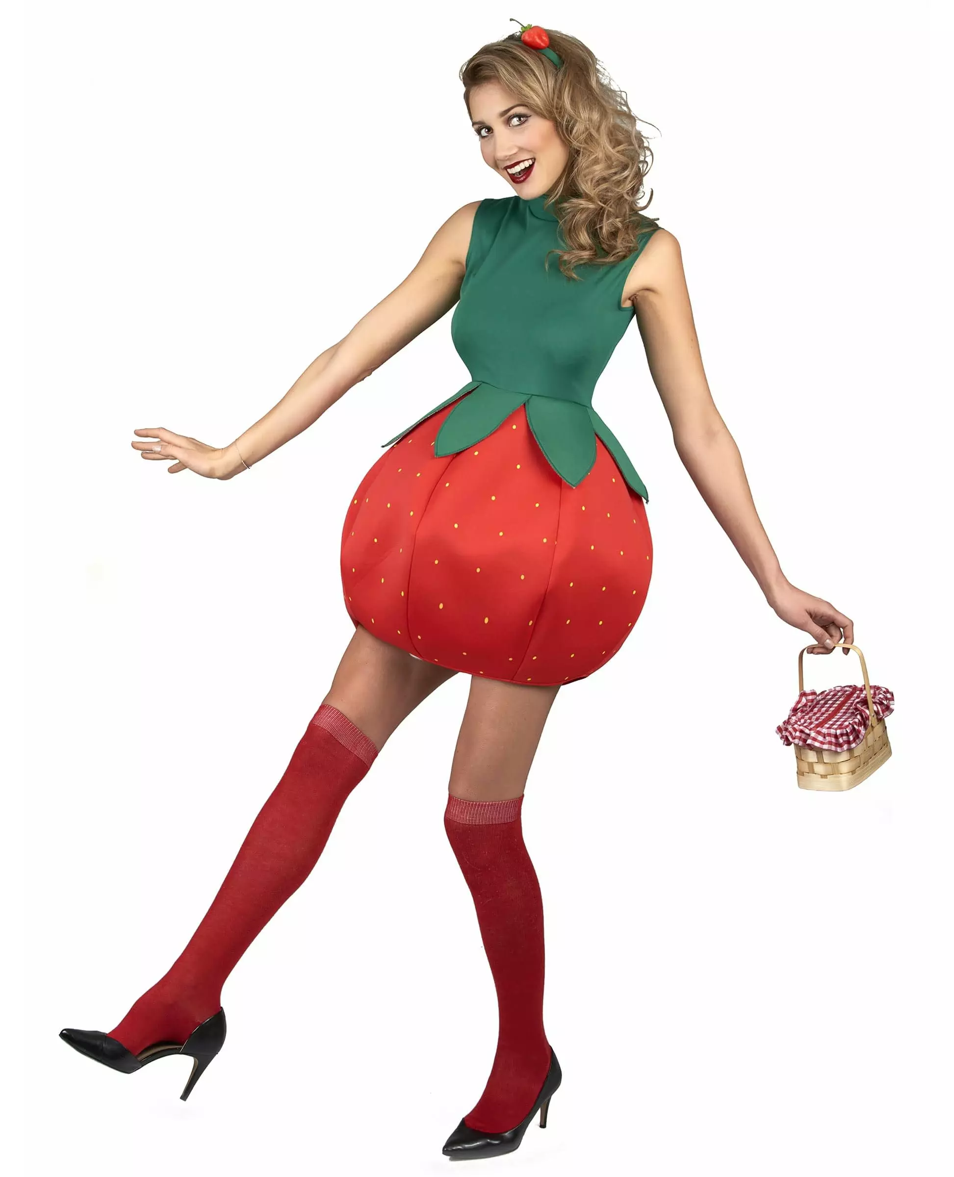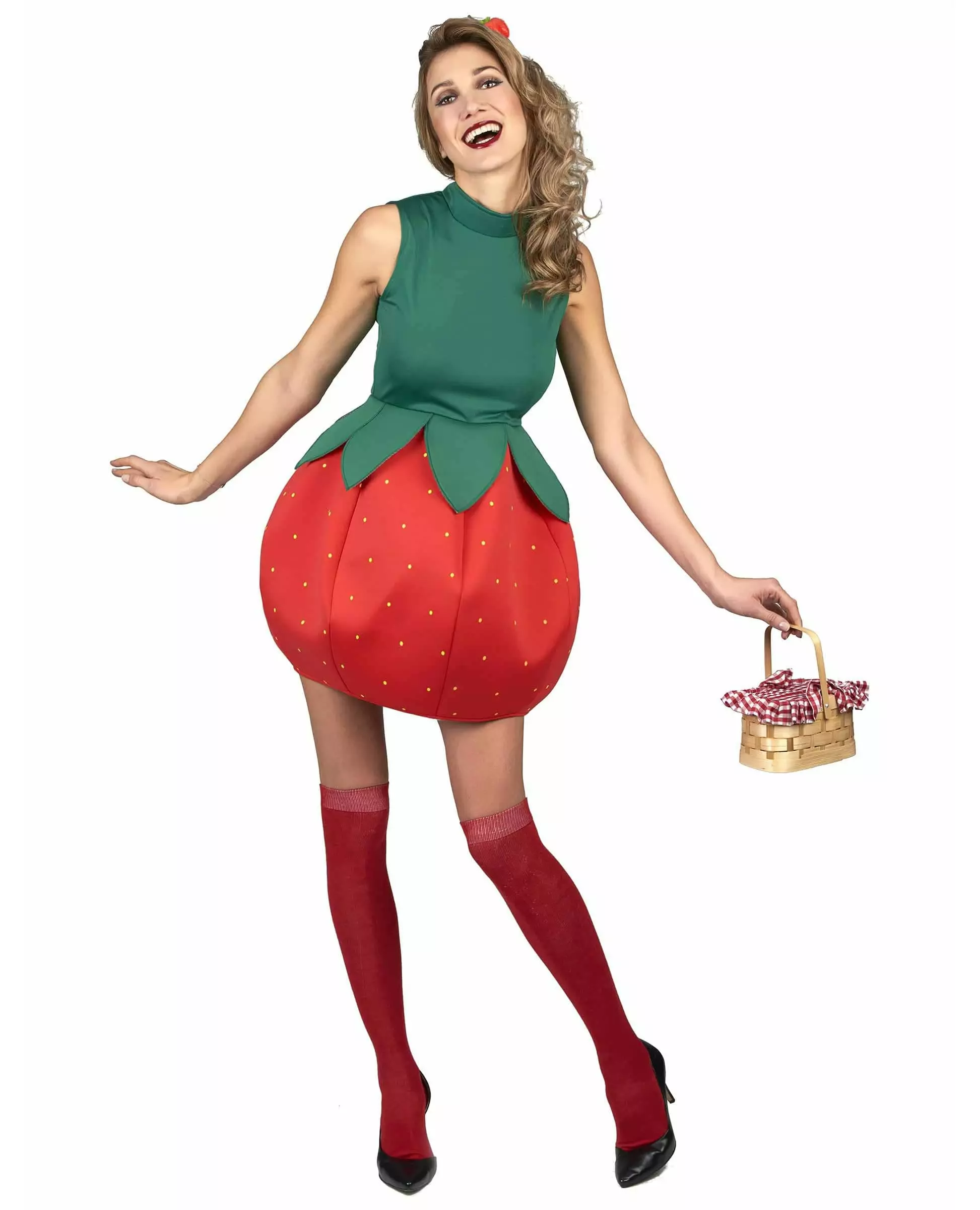 Glamorøs og fruktig! Dette jordbærkostymet for kvinner tilbyr deg en flott kjole som lukkes med glidelås bak og et pannebånd (sokker, kurv og sko er ikke inkludert). Originaliteten til dette kostymet ligger i kuleformen fra livet og opp. Det halvstive skummet sikrer perfekt støtte for den symbolske formen til denne frukten som alle verdsetter! Overdelen i mykt stoff kler elegant bysten og avsluttes i en tettsittende krage i halsen. Det ermeløse anseelsen fremkaller perfekt et pent jordbær i rødt! Plastpannebåndet er dekket av grønt stoff som overdelen av kjolen. Et pent jordbær laget av plast topper hodeplagget som perfekt vil dekorere alle frisyrene dine. Dette kostymet som er verdig en moteuke, vil være perfekt for å vise frem din smak for frukt på et kostyme- eller temafest! Dette kostymet tilbys deg i One Size tilsvarende en 40/42. Inkludert tilbehør: Kjolepannebånd Materiale: 100 % polyester Pleie: Håndvask