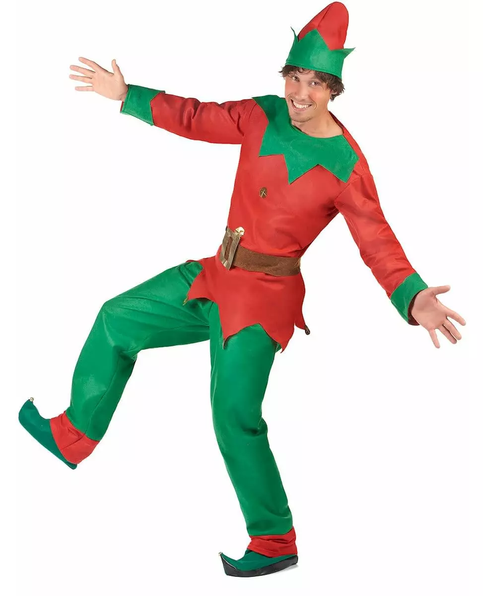 Smart alv! Dette alvkostymet for menn inkluderer en topp, bukser og en spiss hatt. Toppen har lange ermer. Den er rød med grønne mansjetter og en skrå krage. Tunikaen har falske gullklokker på endene av spissene nederst på tunikaen. Et falskt brunt belte med en firkantet spenne er festet til tunikaen, og falske gullknapper dekorerer toppen. Buksene er, i motsetning til toppen, grønne med en rød kant. Hatten matcher også resten av kostymet; den er rød med en grønn skrå kant. En bjelle pryder tuppen av hatten. Dette julenisse-alvkostymet vil være perfekt for å kle seg ut på julaften eller på temafester med venner. Inkludert tilbehør: Topp Bukser med belte Hatt Materiale: 100 % polyester Vedlikehold: Håndvask
