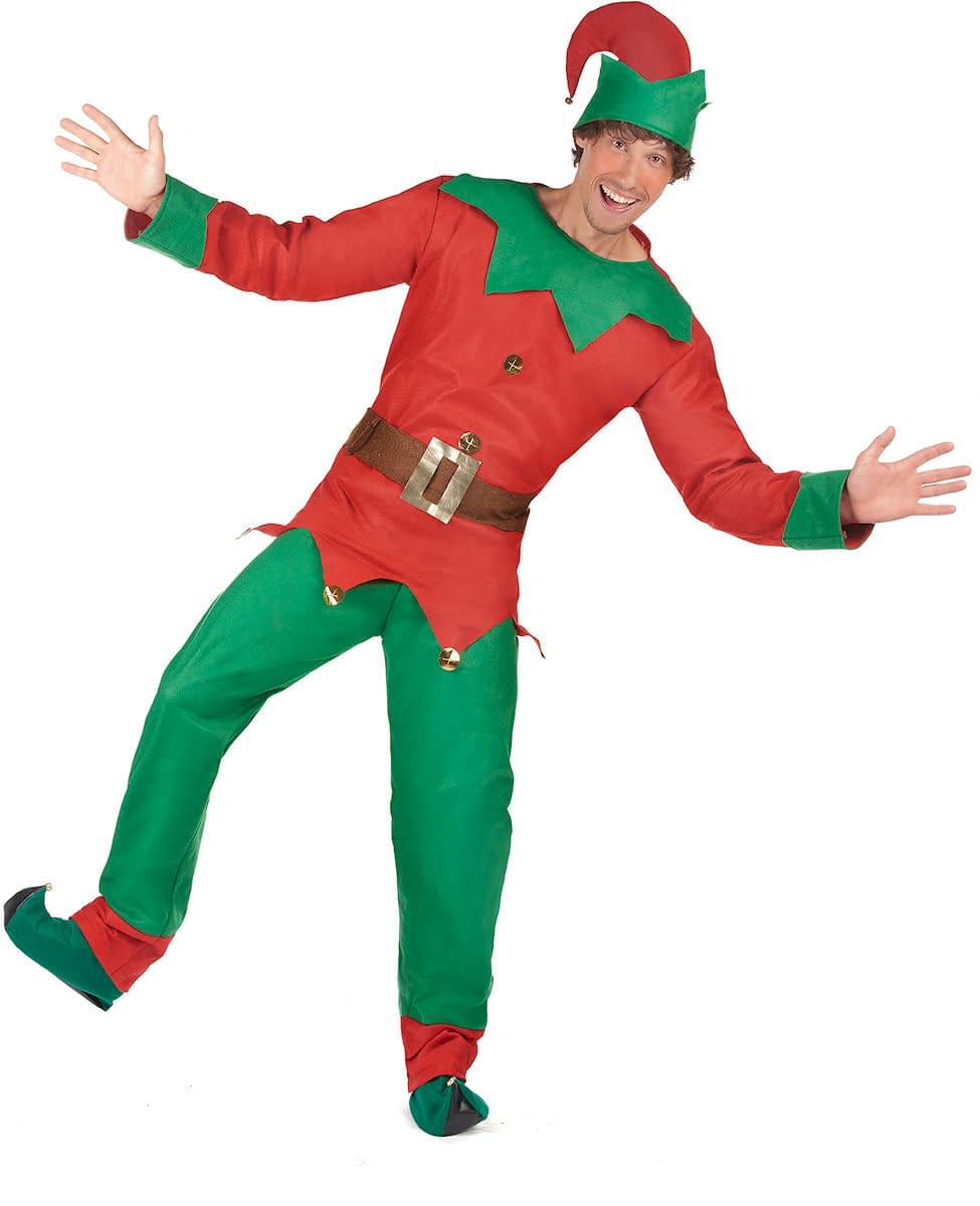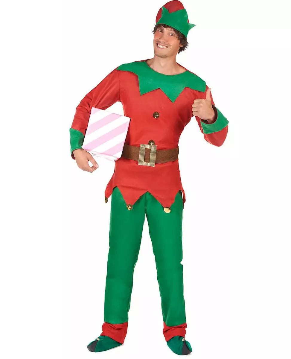 Smart alv! Dette alvkostymet for menn inkluderer en topp, bukser og en spiss hatt. Toppen har lange ermer. Den er rød med grønne mansjetter og en skrå krage. Tunikaen har falske gullklokker på endene av spissene nederst på tunikaen. Et falskt brunt belte med en firkantet spenne er festet til tunikaen, og falske gullknapper dekorerer toppen. Buksene er, i motsetning til toppen, grønne med en rød kant. Hatten matcher også resten av kostymet; den er rød med en grønn skrå kant. En bjelle pryder tuppen av hatten. Dette julenisse-alvkostymet vil være perfekt for å kle seg ut på julaften eller på temafester med venner. Inkludert tilbehør: Topp Bukser med belte Hatt Materiale: 100 % polyester Vedlikehold: Håndvask