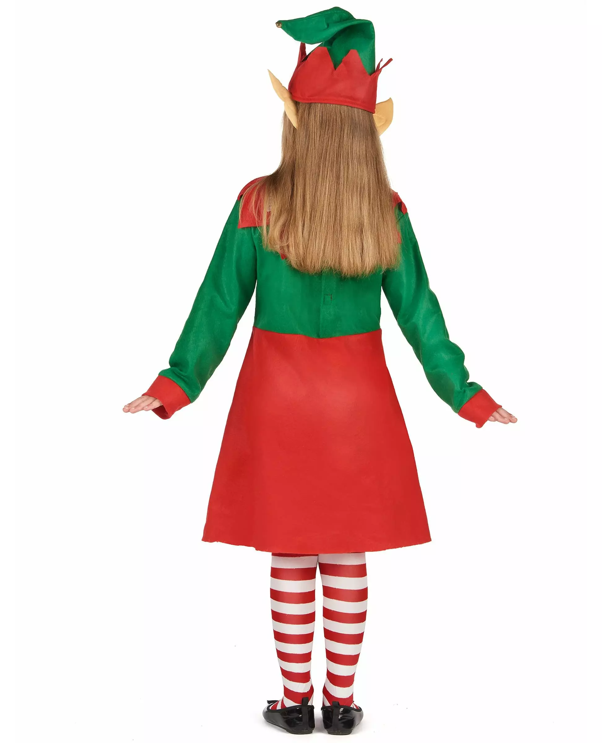 Hjelp julenissen med å levere gavene! Dette jule-nissekostymet for jenter består av en kjole og en hatt. Nissekjolen er grønn på toppen og rød på bunnen. Et svart belte er i midjen, kun foran. Kjolen lukkes bak med borrelås. Nissehatten er grønn og rød. Den har en liten gyllen bjelle på tuppen for å gjenskape julemagien. Dette nissekostymet vil være perfekt for å følge julenissen når han deler ut gaver til jul. Inkludert tilbehør: Kjolehatt Materiale: 100 % polyester Pleie: Håndvask