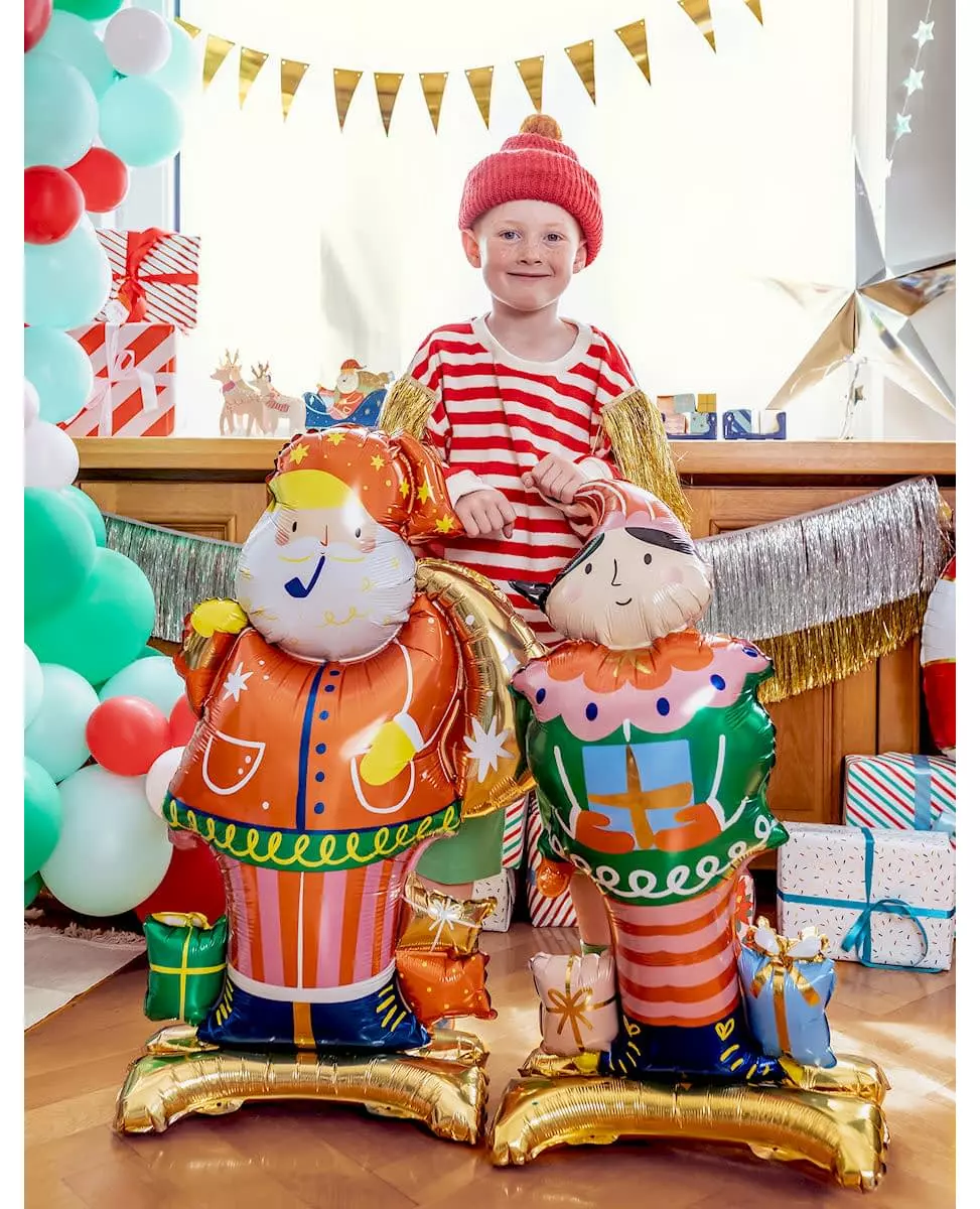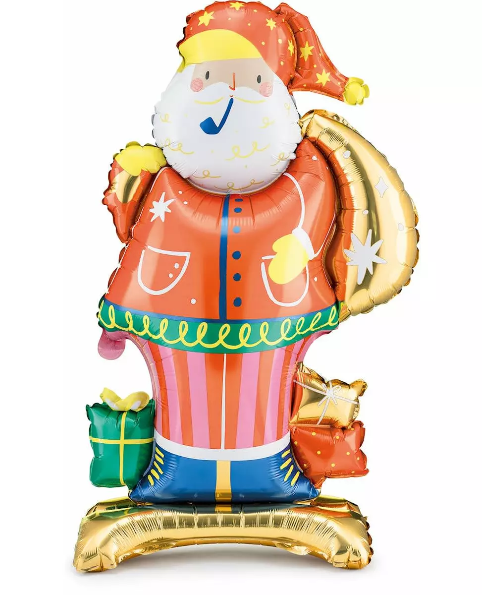 En gigantisk julenisseballong! Denne juleballongen er laget av aluminium og måler omtrent 63 cm bred og 106 cm høy når den er oppblåst. Den forestiller en rød og blå julenisse som har på seg den gylne julesekken sin med gavepakker ved føttene. En gyllen base under føttene lar ham stå oppreist. Denne ballongen vil være ideell for å fullføre julepynten din og underholde barna dine! Inkludert tilbehør: 1 ballong Materiale: Aluminium