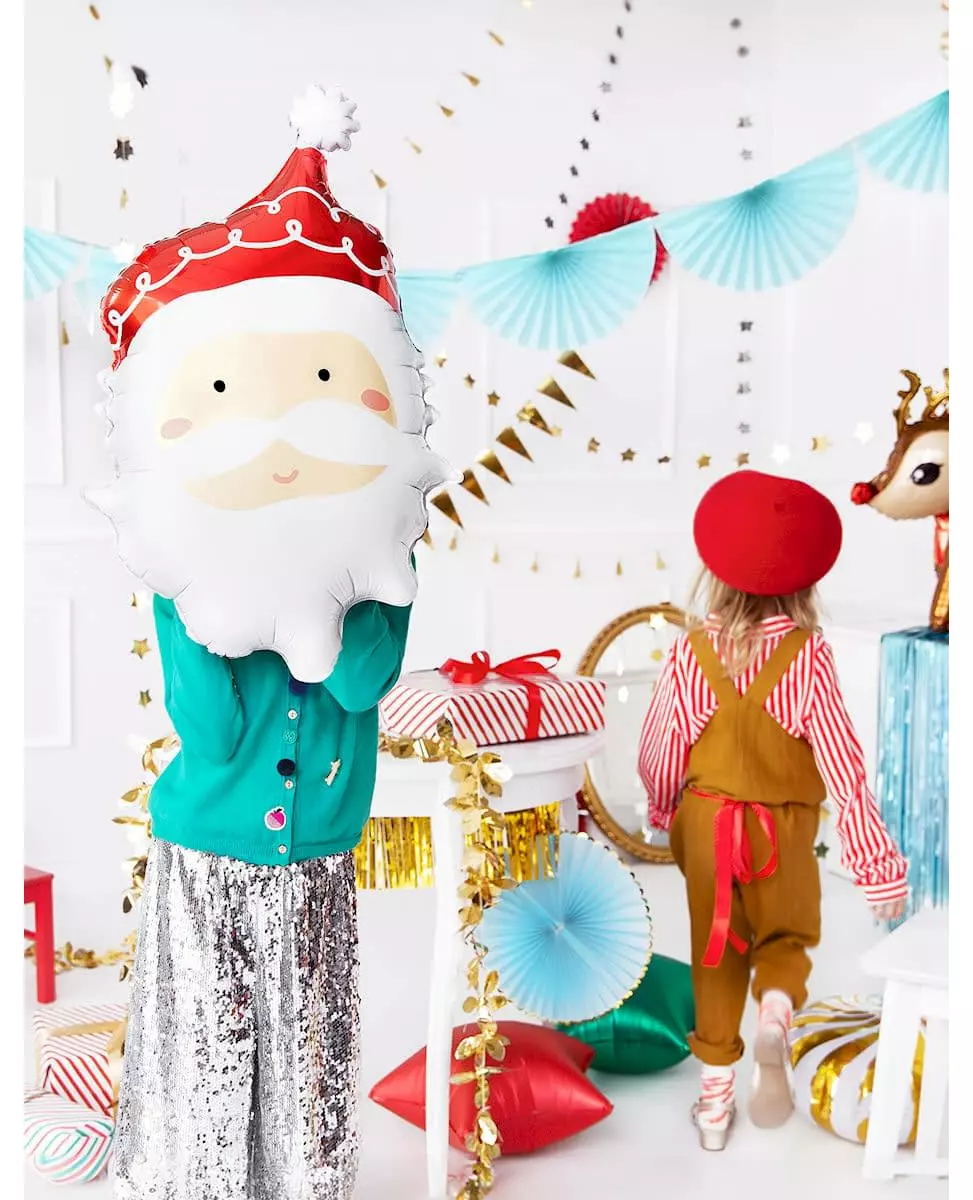 Feir jul med julenissen! Denne julenisseballongen måler omtrent 50 x 70 cm. Laget av aluminium, former den ansiktet til julenissen med den flotte røde hatten og hvite skjegget hans. Ballongen har to små åpninger på toppen som gjør at du enkelt kan henge den opp. Denne julenisseballongen vil fullføre julepynten din perfekt! Inkludert tilbehør: 1 ballong Materiale: Aluminium