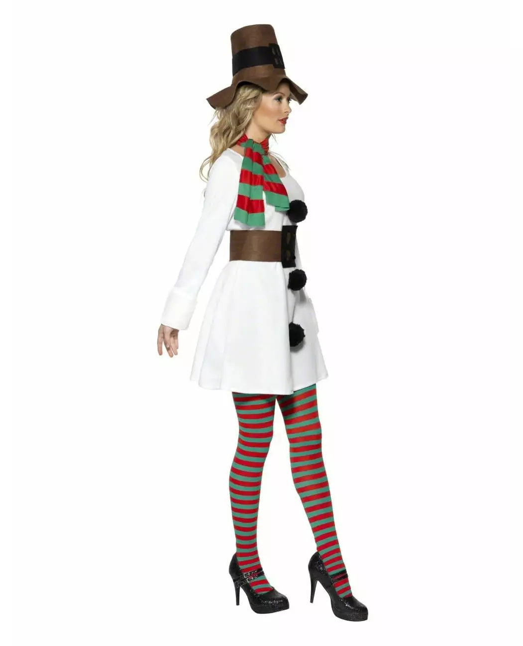Lue og skjerf inkludert! Dette snømannkostymet for kvinner består av en kjole, en lue og et skjerf. Den hvite kjolen måler omtrent 87 cm. Den er laget av myk filt som minner om snøens tekstur. Tre svarte pomponger, et brunt belte og en pelseffekt på hvert håndledd kompletterer kostymet. En brun flosshatt og et grønt og rødt stripete skjerf fullfører antrekket perfekt (strømpebukser og sko er ikke inkludert). Dette antrekket vil være perfekt for kostymefester eller rett og slett til avslutningsfestene. Inkludert tilbehør: Kjolelue Skjerf Materiale: 100 % polyester Pleie: Håndvask
