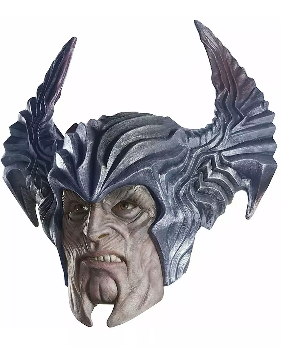 Spill som en superskurk! Denne Steppenwolf-masken er offisielt lisensiert av Justice League. Den er laget av lateks og representerer ansiktet til Steppenwolf med hjelmen og de metallfargede hornene hans. Denne masken er veldig realistisk med detaljer som ansiktstrekk og tydelig synlige, hevede tenner. Denne masken vil være perfekt for en superskurk-tema kostymefest eller til og med til karneval!. Inkludert tilbehør: Maske Materiale: Lateks Stell: Håndvask