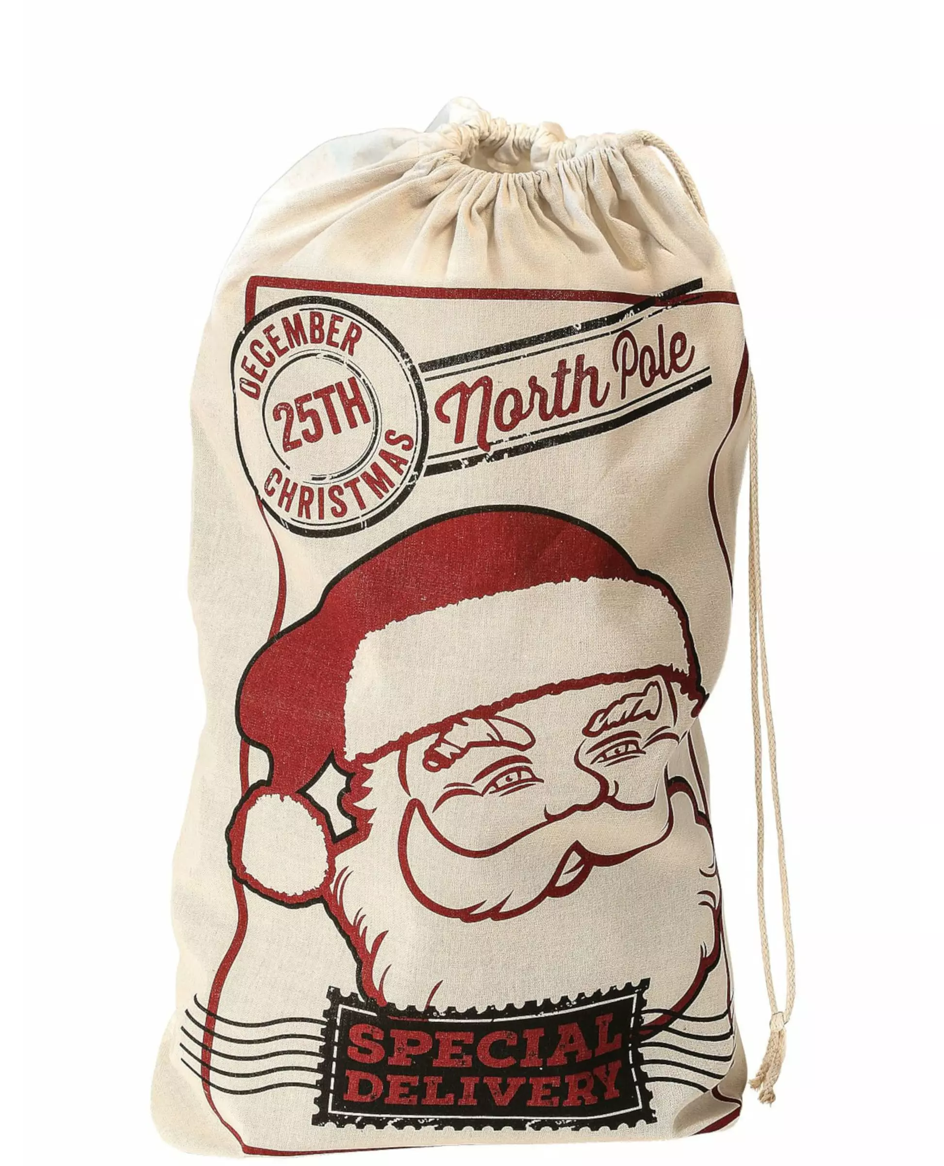 Julenissens levering er tilbake fra Nordpolen! Denne sekken er beige, med et smilende ansikt fra julenissen mens han kommer med gaver fra Nordpolen! Jutesekken er 50 cm bred og 80 cm høy. Innskriften «25. desember, jul, Nordpolen» og «Spesiallevering» indikerer sekkens opprinnelse. En snor øverst på posen lar deg åpne og lukke den. Denne julesekken vil være ideell til julepynt eller for å pakke inn en gave under treet, for eksempel! Inkludert tilbehør: 1 sekk Materiale: Jute
