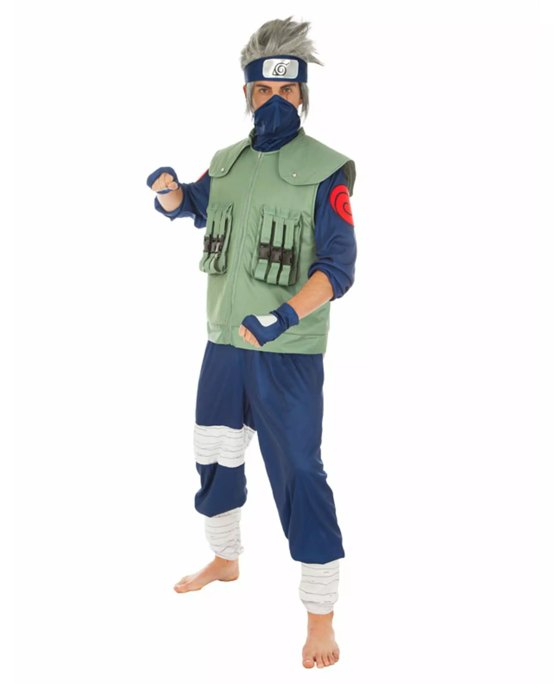 Bli en ninjamester med dette Kakashi-kostymet. Dette Kakashi Hatake™-kostymet for menn er offisielt lisensiert av Naruto™. Det består av en topp, en jakke, bukser, en maske, hansker og en bandana. Den langermede toppen er mørkeblå med røde mønstre på ermene. Buksene er også mørkeblå med falske bandasjer på nedre del av bena og det ene kneet. Den ermeløse vesten er grønn med stropper foran. Hanskene er blå og sølvfargede votter. De er komplett med en blå maske som skjuler den nedre delen av ansiktet ditt. Til slutt vil et blått pannebånd sette prikken over i-en på kostymet ditt. Dette Kakashi-kostymet vil være perfekt for alle Naruto-fans. Inkludert tilbehør: Topp, bukser, jakke, pannebånd, maske, hansker. Materiale: 100 % polyester. Vedlikehold: Håndvask.