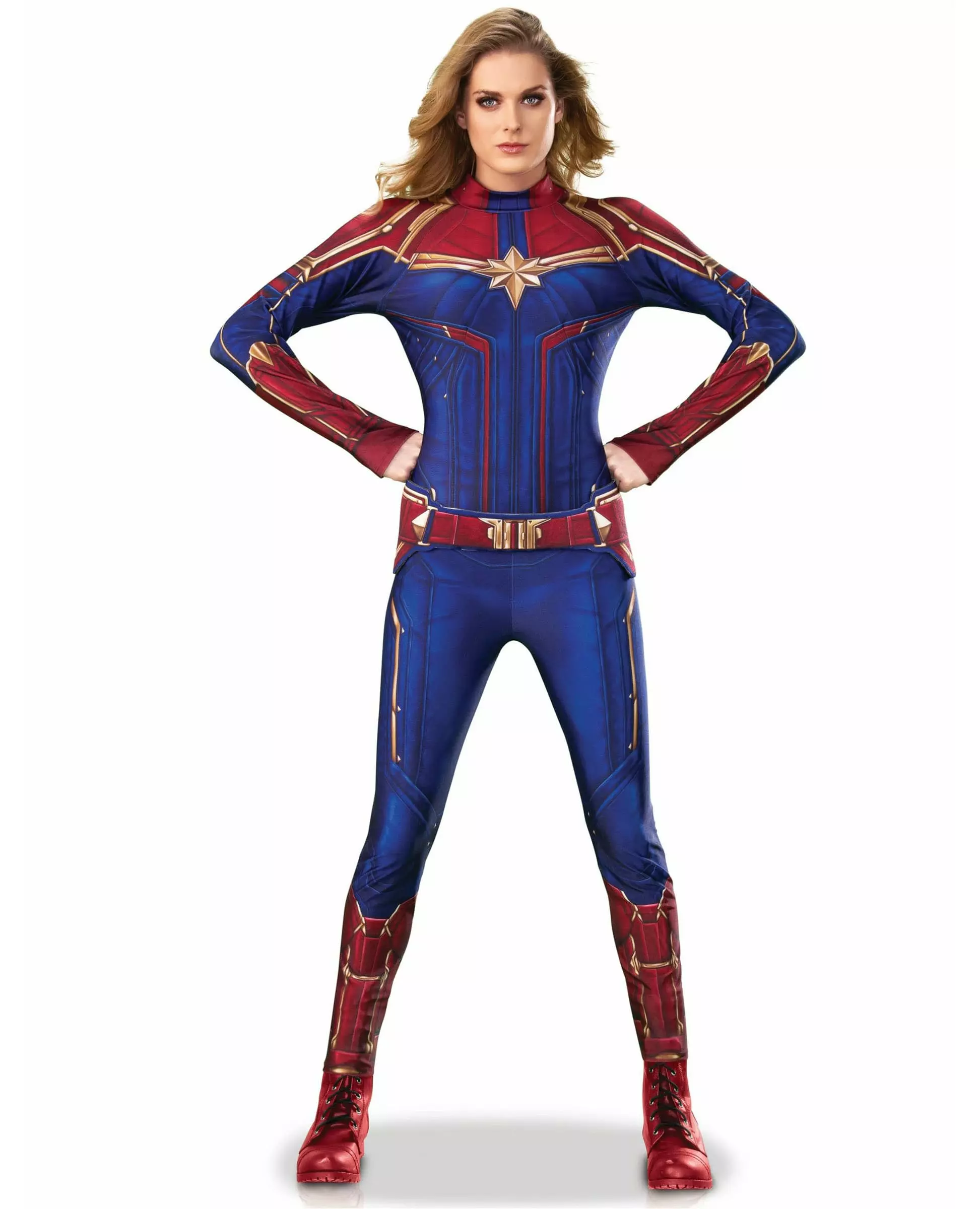 Deluxe Captain Marvel™ damekostyme. Høyere, enda raskere. Dette Captain Marvel™ damekostymet er offisielt lisensiert av Marvel™. Voksenkostymet inkluderer: Jumpsuit, belte.