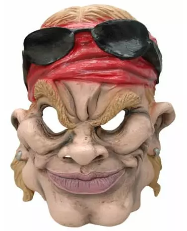 Myk PVC! Denne amerikanske biker-karikaturmasken for voksne er laget av myk PVC. Ansiktstrekkene er presise, og den har en tykk, svart strikk for god passform i ansiktet. Denne masken vil være det essensielle tilbehøret for å gjøre deg til den mest utrolige rockeren på kostyme- eller temafestene dine. Inkludert tilbehør: maske Materiale: PVC