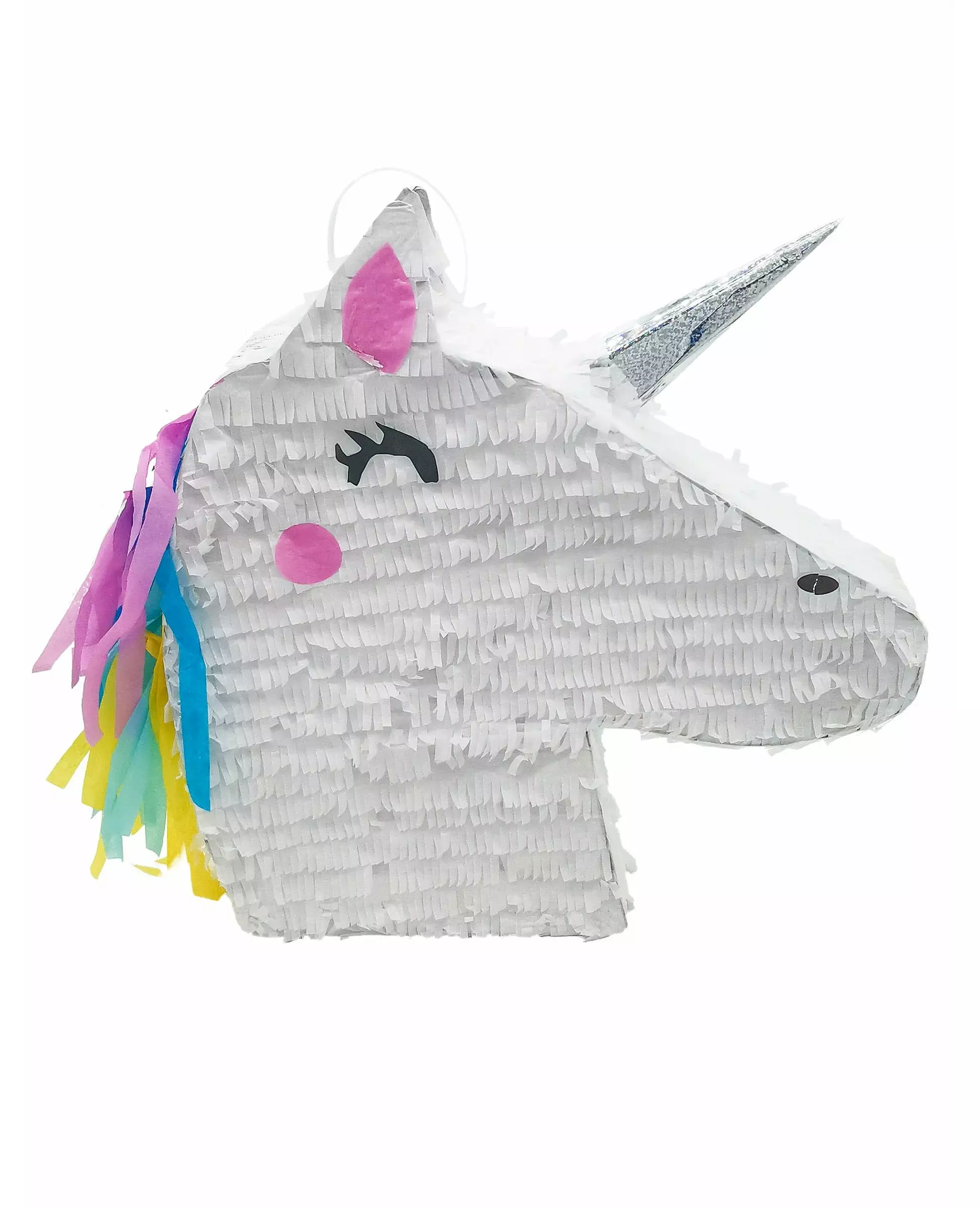For en magisk bursdag! Denne papppiñataen er formet som et hvitt enhjørningshode med et sukkersøt rosa horn og hår (godbiter og minigaver er ikke inkludert). Denne søte piñataen måler omtrent 47 x 32 x 8 cm. Barn kan ha det gøy med å slå den med en pinne for å avsløre skatten som er gjemt inni. Lag en morsom og deilig aktivitet til datterens bursdag med temaet enhjørninger eller legendariske dyr med denne piñataen. Inkludert tilbehør: 1 piñata. Materiale: Papp.