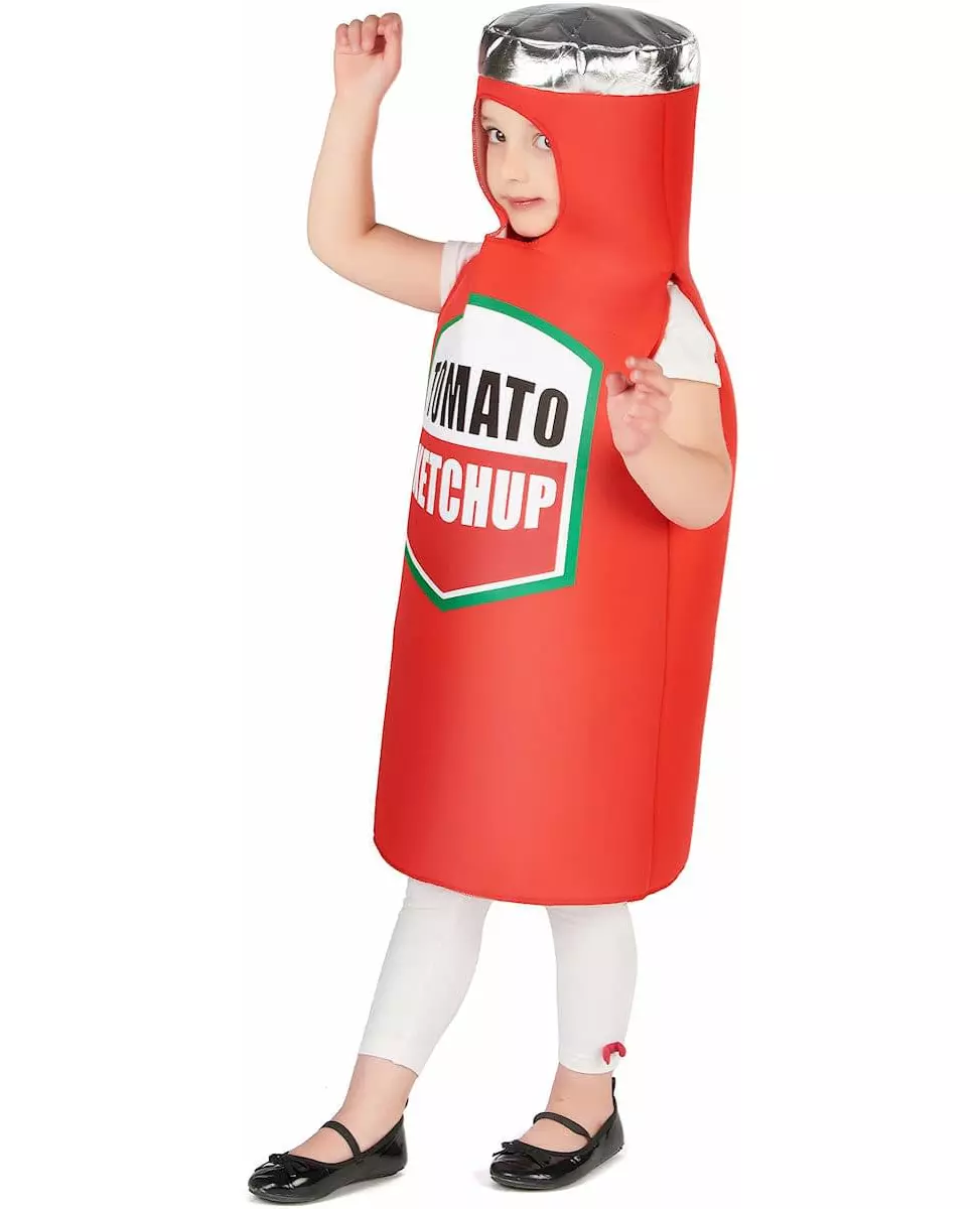 Min saus! Dette ketchup-kostymet for barn består av en jumpsuit (t-skjorte, bukser og sko er ikke inkludert). Ermeløs og rød i fargen, har dette kostymet utseendet til en ketchupflaske. Det er laget av skum dekket med polyesterjersey som bidrar til å bevare formen. En åpning for kropp, armer og hode er til stede for å sikre komforten til dette kostymet. Det er også en sølvkapsel på toppen av kostymet og et trykk på forsiden: "TOMATKETCHUP". Det vil være perfekt for parade under karneval eller en mat-tema kostymefest! Inkludert tilbehør: Jumpsuit, Materiale: Polyester,