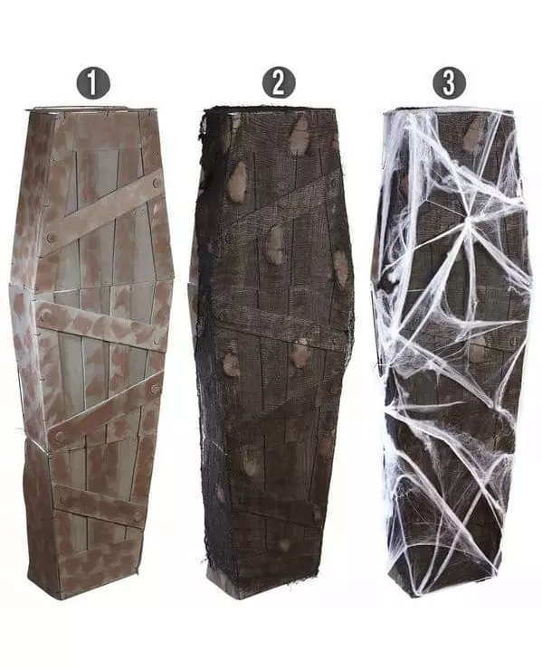 Kiste i naturlig størrelse! Denne Halloween-dekorasjonen inneholder en kiste og spindelvev i hvitt og svart stoff. Kisten er laget av stivt skum og måler omtrent 160 cm i høyden når den er montert. Et realistisk trykk får kisten til å se ut som den er laget av tre. Legg til dette autentiske stykket til Halloween-dekorasjonen din for å gjenskape en begravelses- og skummel atmosfære som vil imponere vennene dine! © Copyright Widmann SRL. Inkludert tilbehør: Kiste Edderkoppvev Materiale: Skum, metall