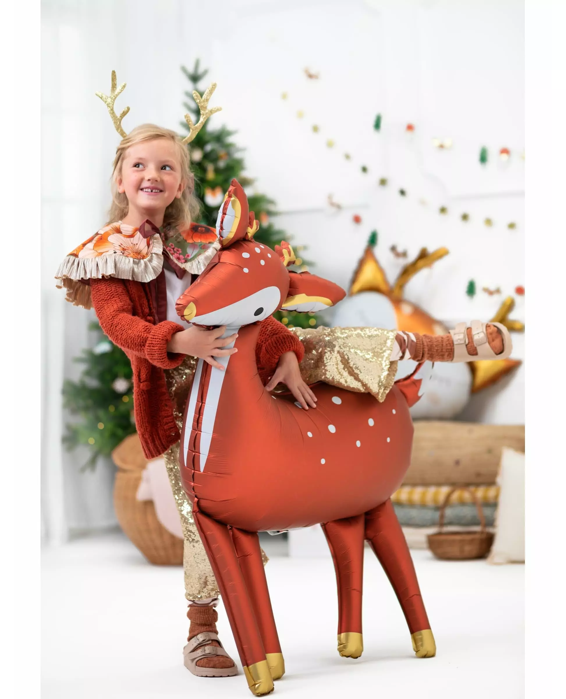 Inviter skogens dyr inn i festdekorasjonene dine! Denne gigantiske reinsdyrballongen er laget av aluminium. Den måler omtrent 80 x 105 cm. Denne aluminiumsballongen er reinsdyrformet. Den kan blåses opp med luft eller helium for å holde den i luften. For å gjøre dette, setter du ganske enkelt et sugerør (ikke inkludert) inn i ventilen som er beregnet for dette formålet. Lag en dekorasjon verdig den vakreste julekrybbescenen under slutten av året takket være denne fine ballongen. Inkludert tilbehør: 1 gigantisk ballong Materiale: Aluminium