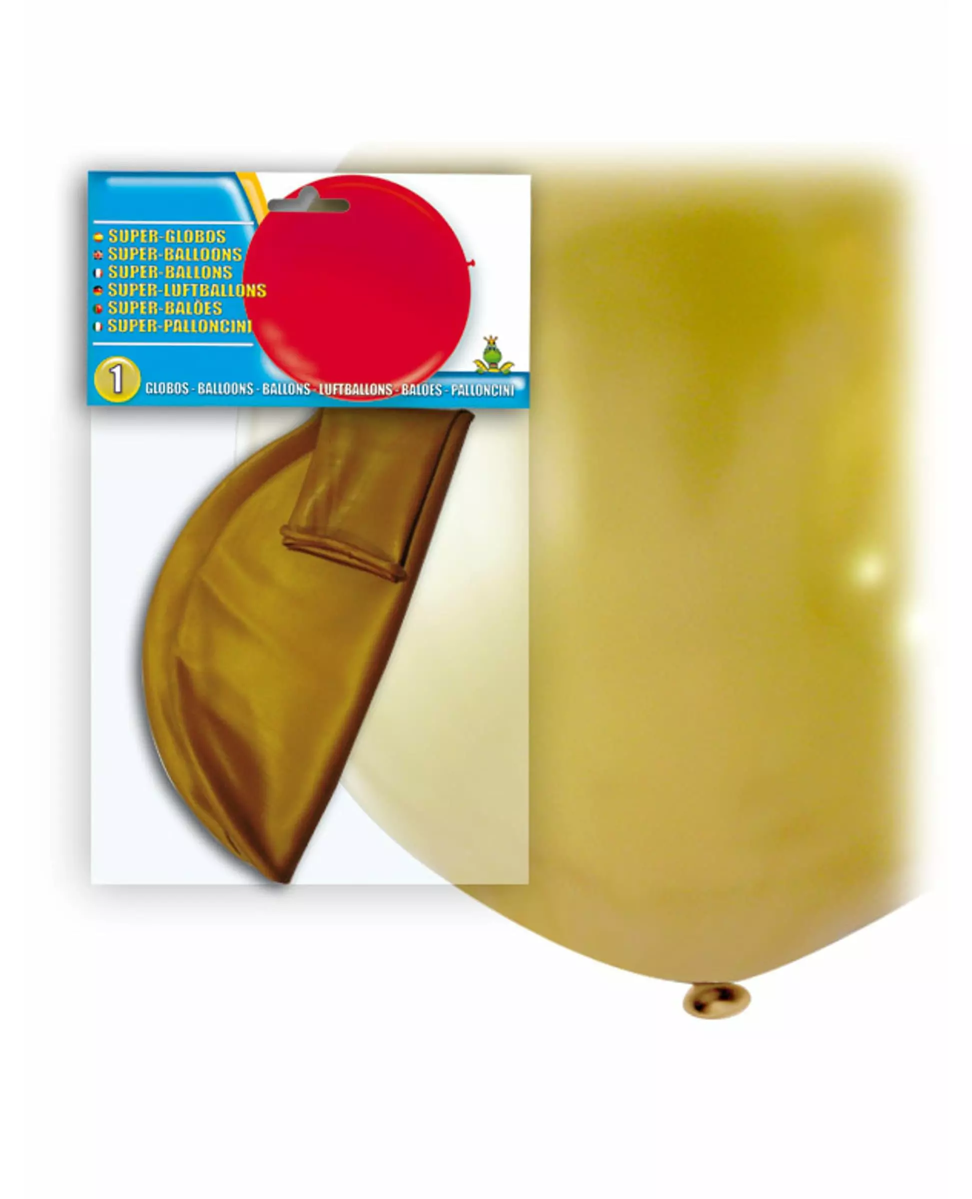 En gigantisk ballong til en gigantisk fest! Denne gigantiske gylne ballongen er laget av lateks. Når den er oppblåst, vil den måle nesten 80 cm i høyden. Den vil være ideell for en bursdagsfest eller et elegant og gyllent nyttår! Inkludert tilbehør: 1 ballong Materiale: Lateks