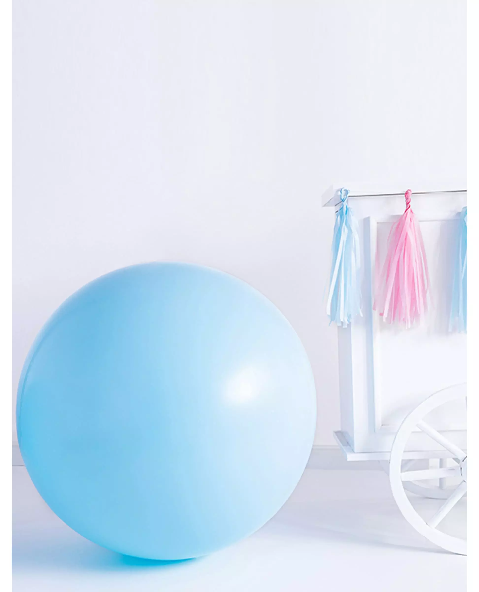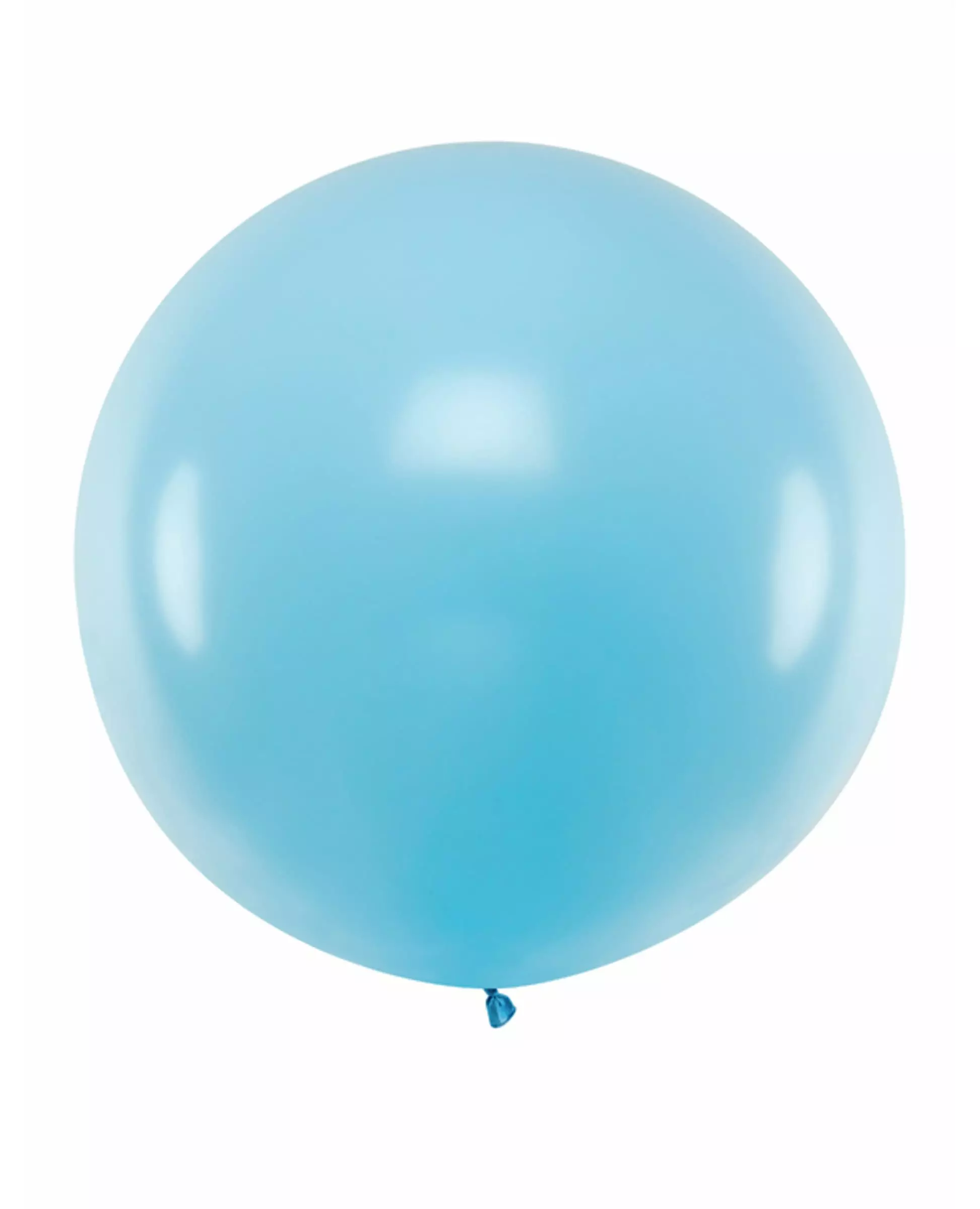 En ballong til en gigantisk dekorasjon! Denne gigantiske ballongen er laget av lateks. Pastellblå i fargen, den er omtrent 1 m i diameter når den er oppblåst. Du kan blåse den opp med luft eller helium for å få den til å sveve i luften. En ideell ballong for å fullføre en bursdags- eller babyshower-dekorasjon! Inkludert tilbehør: 1 gigantisk ballong Materiale: Lateks