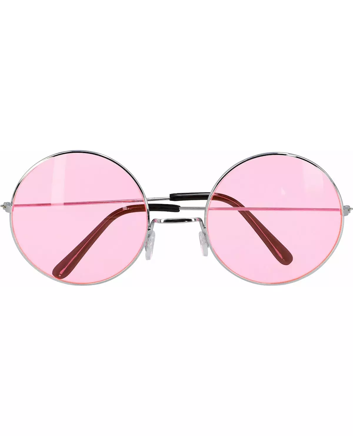 Legg til et retro-preg! Disse hippie-brillene er for voksne. Glassene er runde og rosa, og innfatningen er sølvfarget. Gå inn i 70-tallet med disse gigantiske hippie-brillene! Inkludert tilbehør: 1 par briller