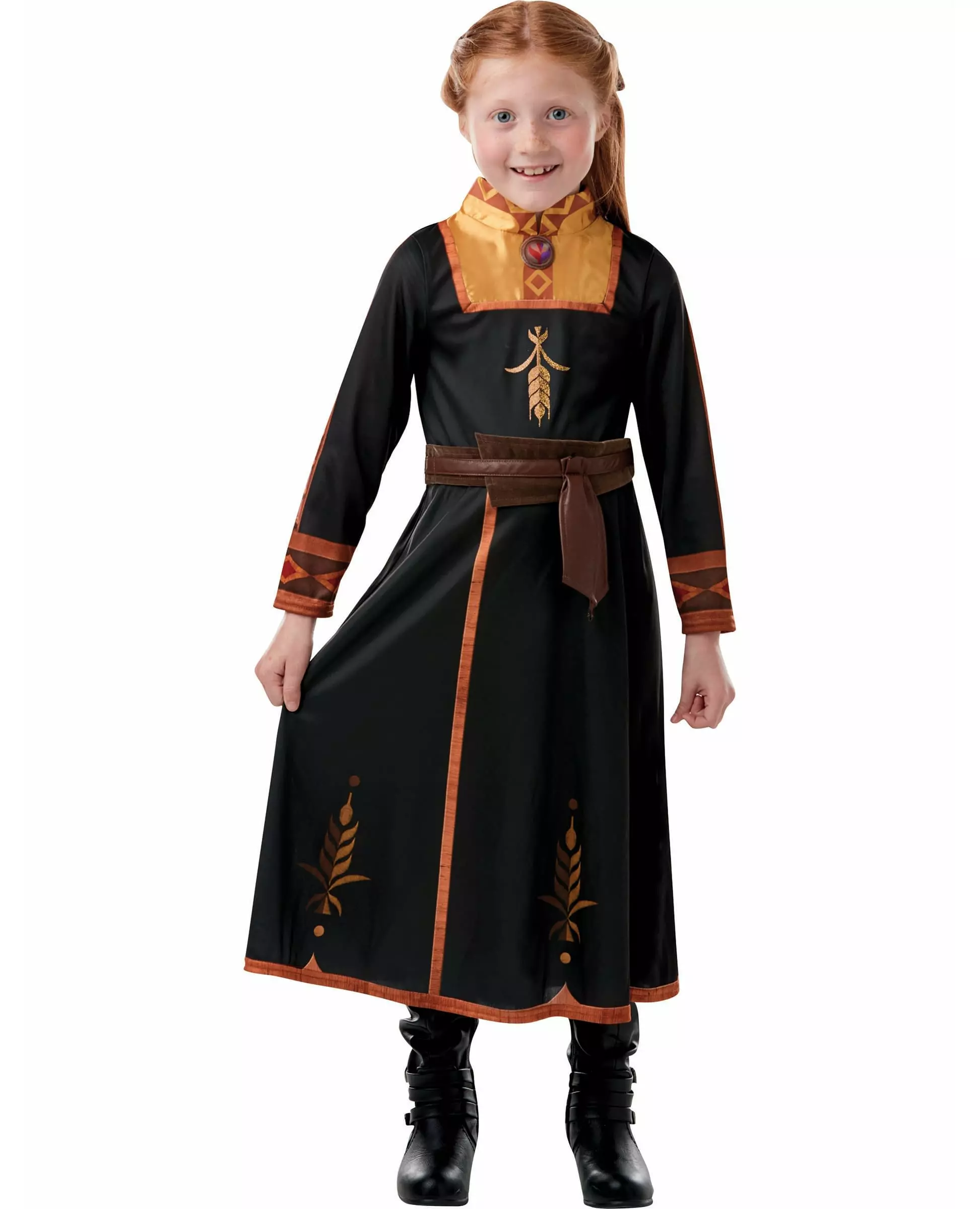Et Anna-kostyme Dette klassiske Anna®-kostymet er for jenter. Det er offisielt lisensiert av Frost 2® og består av en kjole, et belte og en kappe. Den langermede kjolen er laget av svart stoff med gule og gulltrykte mønstre. Det er en filtbrosje på den gylne kragen. Et brunt trykt båndbelte er inkludert for å matche antrekket til denne prinsessen av Arendelle perfekt. Til slutt er en lang, ermeløs lilla kappe inkludert for å fullføre dette kostymet. I Anna-kostymet hennes vil datteren din være den vakreste prinsessen på bursdagen sin eller karnevalet. Inkludert tilbehør: Kjole med belte Kappe Materiale: 100 % polyesterstoff Stell: Håndvask Målinformasjon: For størrelse 2/3 år, kjolen er omtrent 66,5 cm lang