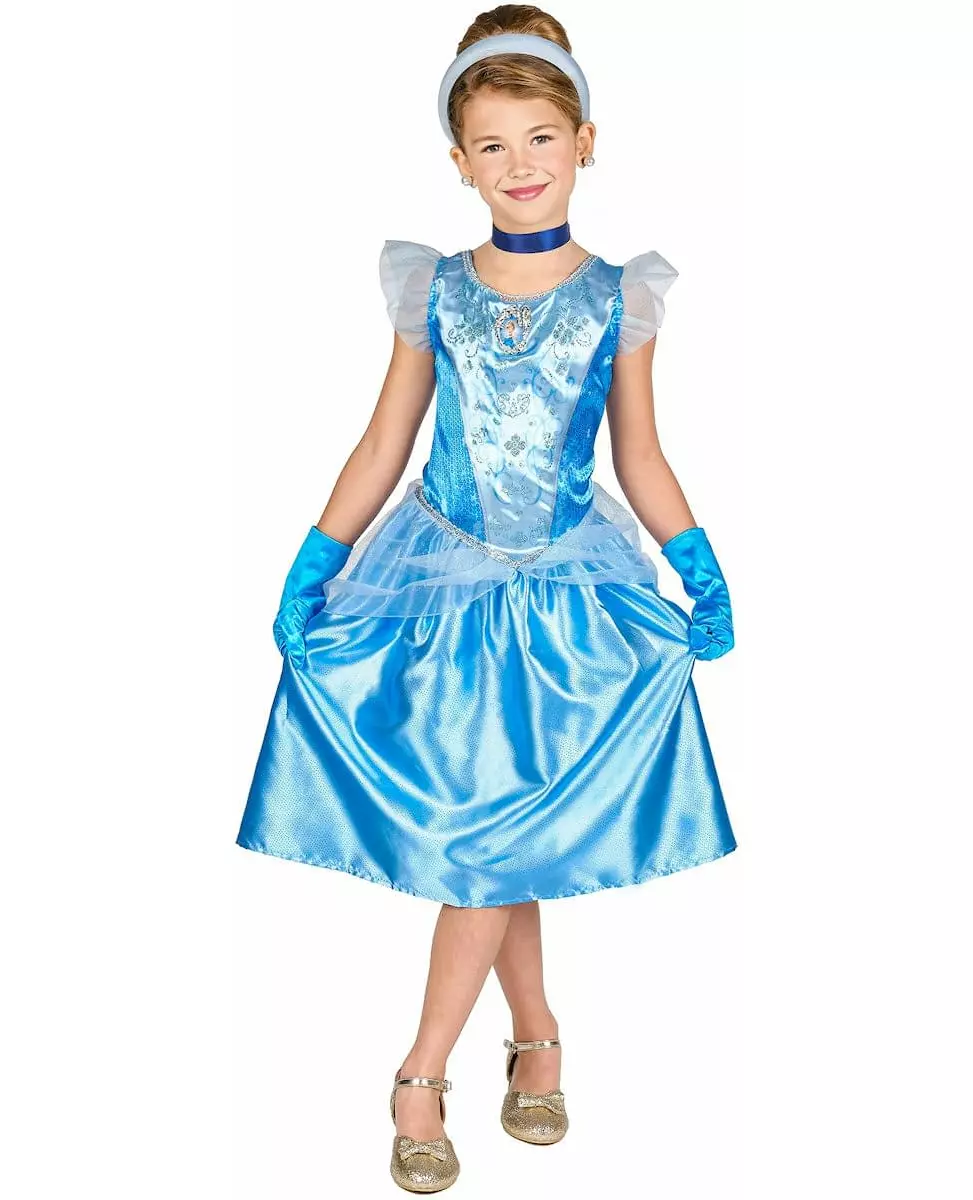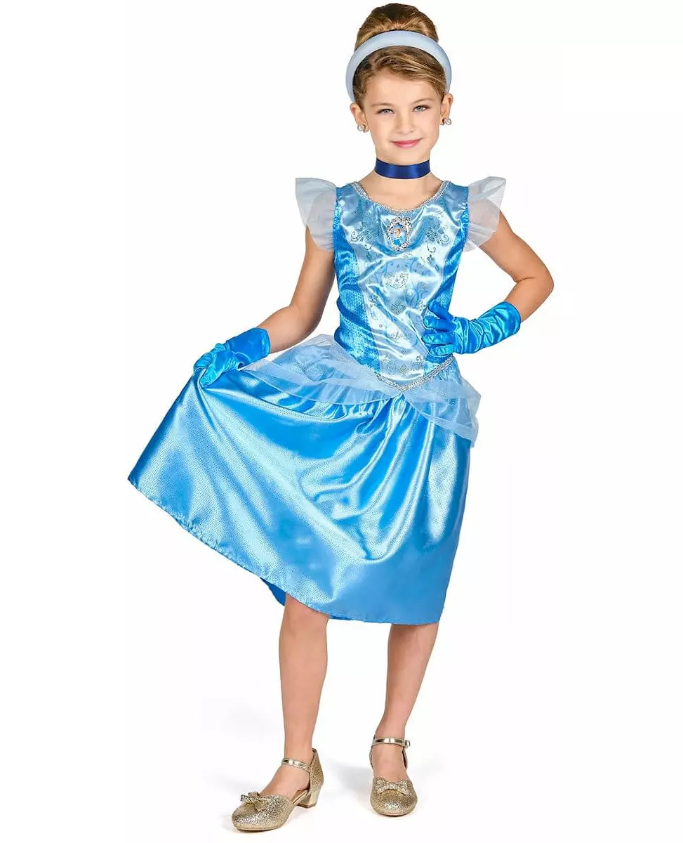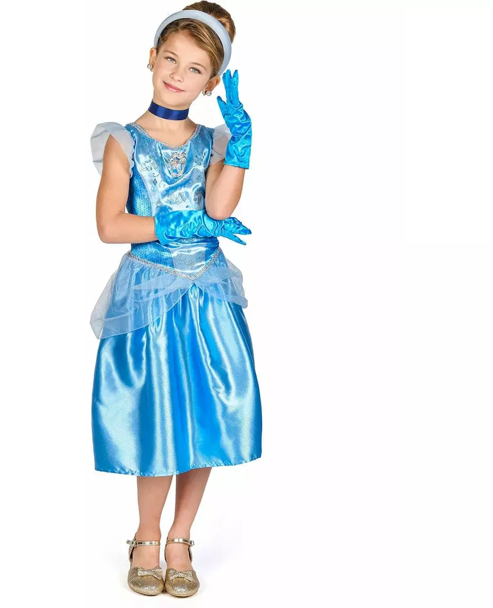 Det er som en drøm! Dette klassiske Askepott-kostymet for jenter er offisielt lisensiert av Disney. Det inneholder kun én kjole. Kjolen er mellomlang og ermeløs, i blå og hvite toner. Den er dekorert med tyllrysjer på skuldrene og i midjen. Sølvkant fullfører antrekket foran. Det har også kongelige motiver på bysten. Dette settet vil være ideelt for prinsesseantrekket ditt, til karneval eller til barnets bursdagsfest! Inkludert tilbehør: 1 kjole Materiale: 100 % polyester Pleie: Håndvask