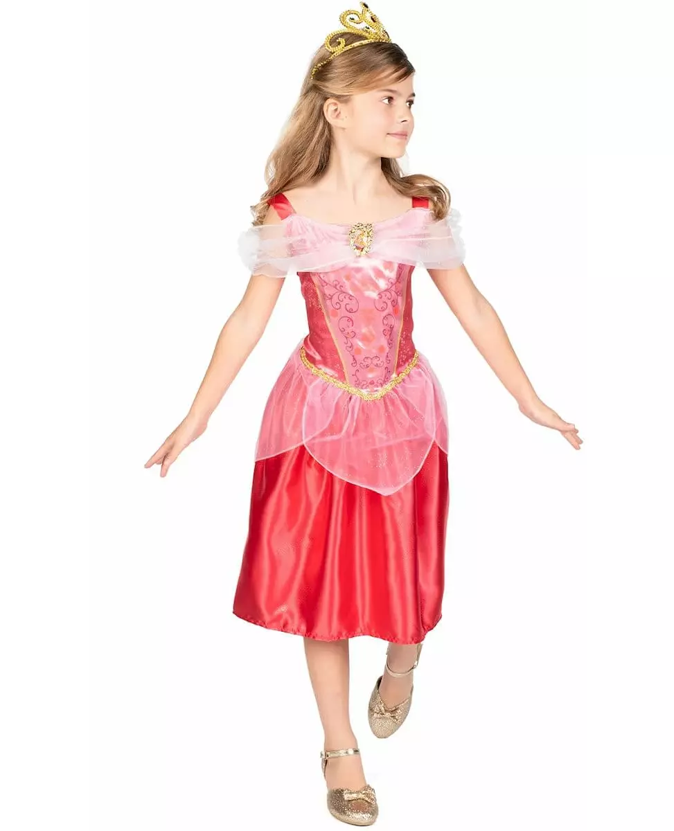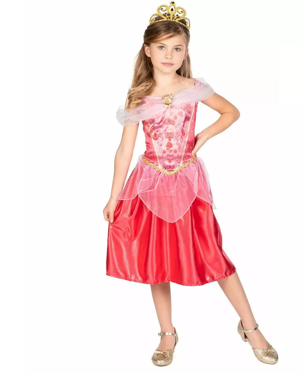 Ære være dronningen! Dette Aurora Tornerose-kostymet for jenter er offisielt lisensiert av Disney. Det inkluderer kun en kjole. Kjolen er mellomlang og ermeløs. Den er rød overalt. Den har en satengeffekt, dekorert med gjennomsiktige rosa slør i midjen og på den øvre delen av skuldrene. Brystet er lettere enn resten, og kjennetegnes av sine forskjellige mønstre med temaet kongelig. Dette Tornerose-kostymet vil være ideelt for barnets bursdagsfest! Inkludert tilbehør: Kjole Materiale: 100 % polyester Pleie: Håndvask