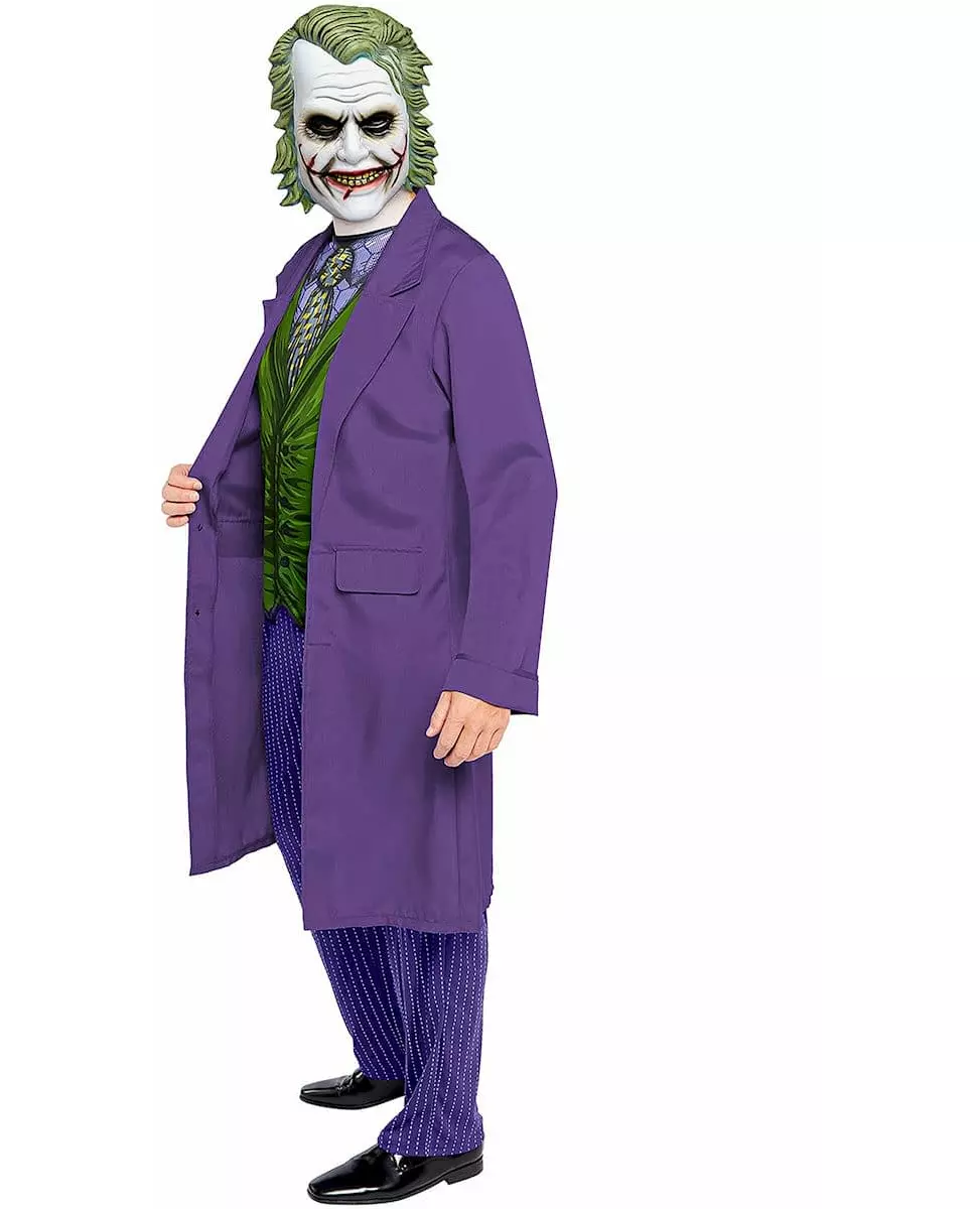 Legemliggjør den berømte forbryterprinsen Dette offisielt lisensierte Joker-klassiske herrekostymet inkluderer en lang jakke med trykt vest, stripete bukser og en halvmaske i skumgummi for en fullstendig forvandling. Den stilige lilla jakken er ledsaget av en skinnende grønn vest. Sammen gjenskaper de trofast den unike stilen til den berømte forbryteren. De vertikalt stripete buksene gir en perfekt kontrast, og tilfører et snev av eksentrisitet samtidig som de forblir komfortable for bevegelsene dine. Til slutt fullfører halvmasken i skumgummi, med Jokers forstyrrende trekk, dette kostymet for et realistisk og skremmende utseende. Ideelt for å spille forbryterprinsen på karneval eller Halloween, en kostymefest eller et temaarrangement. Inkludert tilbehør: Lang jakke med grønn trykt vest, stripete bukser, halvmaske i skumgummi. Materiale: 100 % polyester. Pleie: Håndvask.