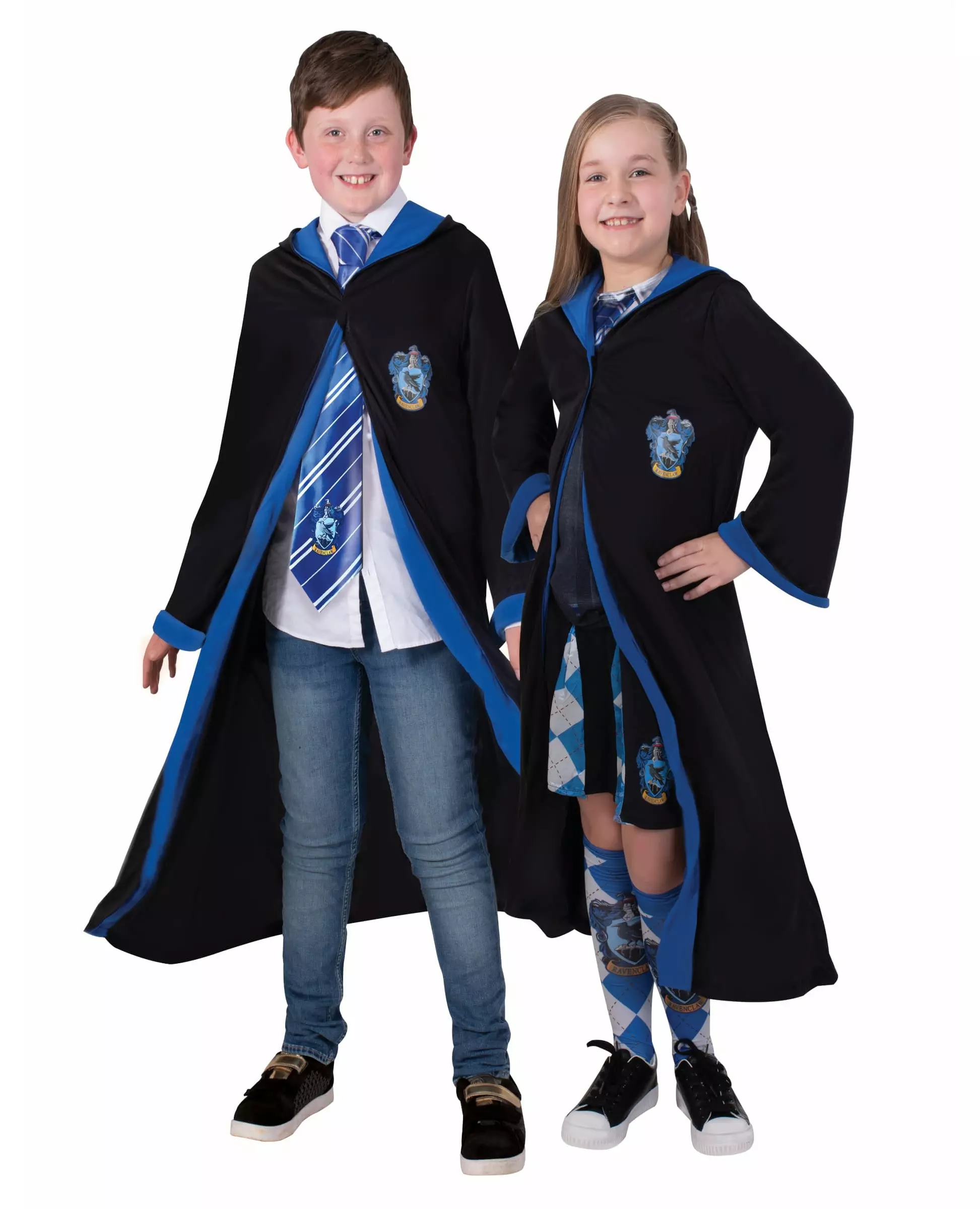 En ny trollmannslærling til Ravnklo-huset! Dette klassiske Ravnklo-kostymet, lisensiert av Harry Potter®, er for barn. Det består av en hettekåpe med et Ravnklo-våpenskjold trykt på brystet. Den lange jerseykappen er svart og blå. Den har lange, utsvingte ermer og en hette bak. Ravnklo-husets våpenskjold er trykt på brystet. Du kan enkelt lukke denne kappen takket være en liten lås foran på denne pene kjolen. Dette kostymet vil være perfekt for å spille favorittkarakteren din fra sagaen på et utkledningsarrangement som karneval! Inkludert tilbehør: En tunika Materiale: Polyester Stell: Håndvask