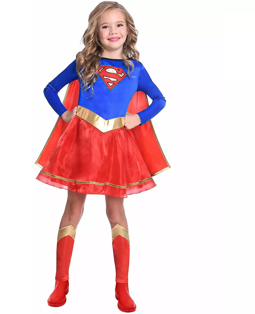 En heltinne klar til å redde verden! Dette offisielt lisensierte Supergirl™-kostymet for jenter inkluderer en stilig kjole, en avtakbar kappe og matchende støveltrekk. Kjolen viser frem Supergirls utseende med en blå topp utsmykket med det ikoniske symbolet og et flagrende rødt skjørt med gulldetaljer. Den avtakbare, knallrøde kappen festes enkelt til kostymet. De røde støveltrekkene, dekorert med gulldetaljer, fullfører antrekket og lar deg legemliggjøre en superhelt klar til å redde verden. Dette kostymet vil være perfekt for en kostymefest, et karneval eller enhver annen spesiell anledning der du kan skinne som en heltinne!. Inkludert tilbehør: Kjole Avtakbar kappe Støvletter Materiale: 100 % polyester Vedlikehold: Håndvask