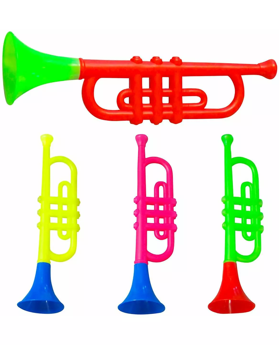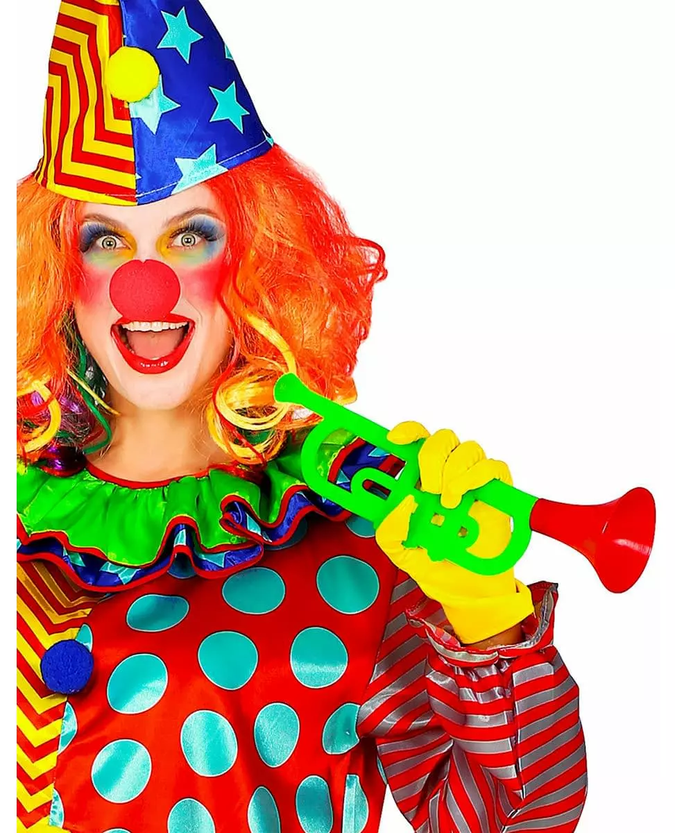 For klovnemusikere Denne klovnetrompeten er laget helt av plast. Den måler 30 cm. Flere farger er tilgjengelige og leveres tilfeldig. Én ting er sikkert, en god overraskelse garantert ved mottak! Denne trompeten er perfekt for å fullføre et klovneantrekk til et karneval eller en bursdag. ©Copyright Widmann SRL. Inkludert tilbehør: trompet Materiale: plast