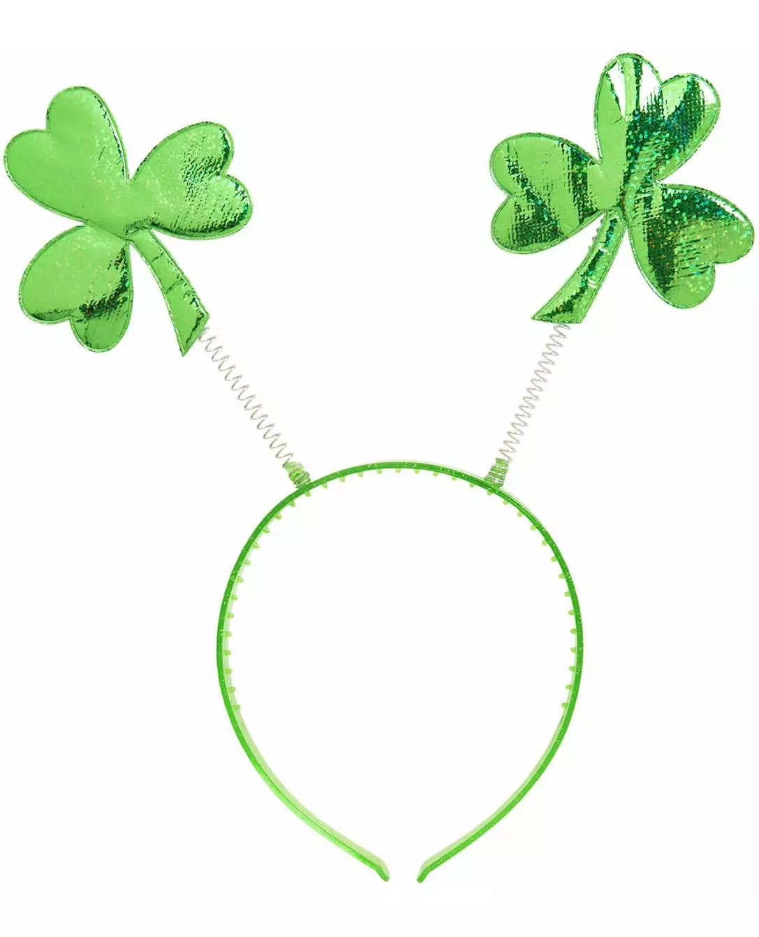 Få lykken på din side med dette shamrock-pannebåndet. Dette grønne pannebåndet for voksne har to skinnende kløvere på fjærer. Kløverne måler omtrent 9 cm i høyden. Dette tilbehøret vil gi et snev av sjarm til ditt irske antrekk til St. Patricks dag. «Copyright Widmann SRL». «Copyright Widmann SRL. Inkludert tilbehør: Pannebånd