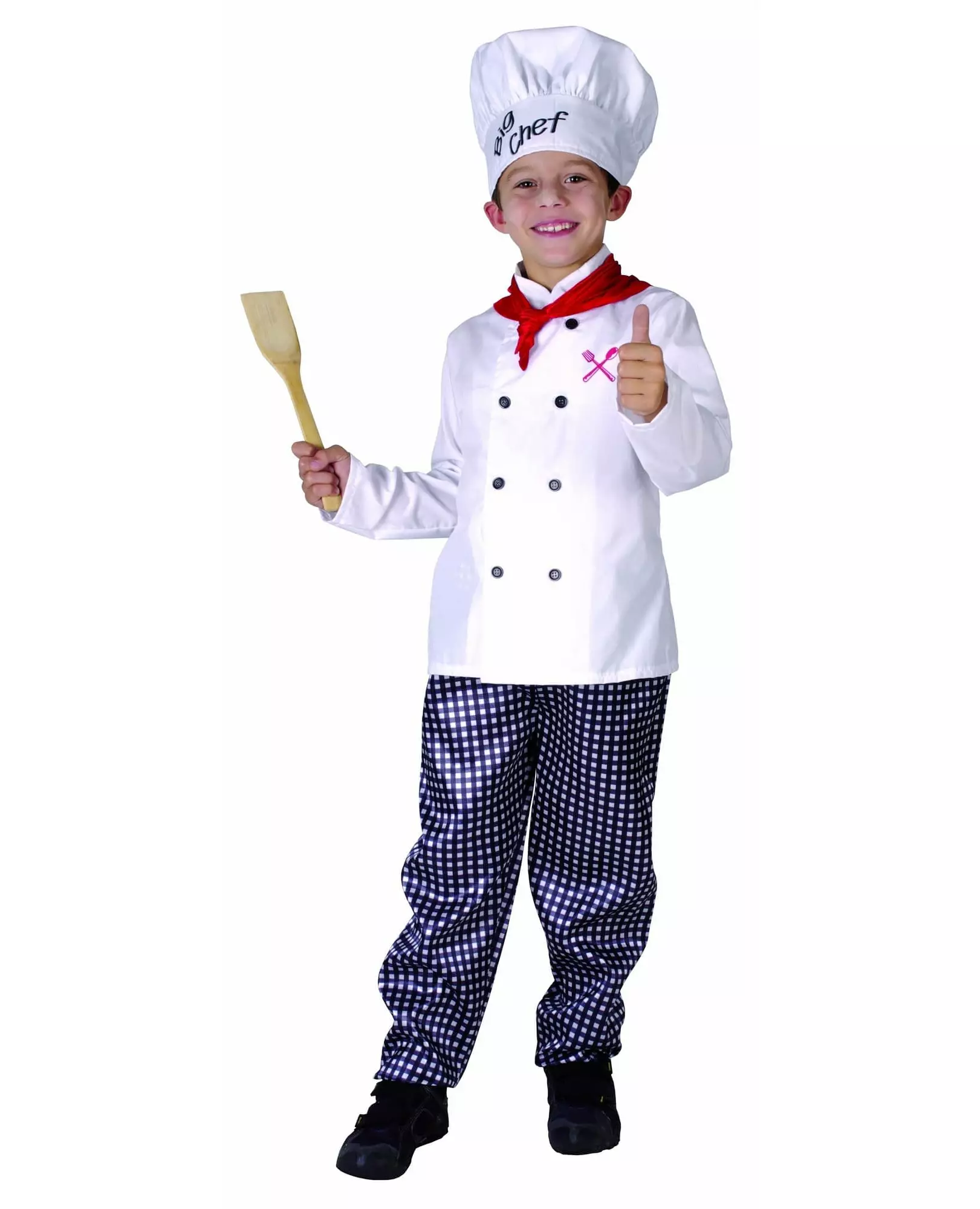 Lag de beste oppskriftene i dette kokkekostymet. Dette kokkekostymet for gutter består av en topp, bukser, et skjerf og en hatt (kjøkkenutstyr og sko er ikke inkludert). Den hvite, langermede toppen har lite bestikk trykt på brystet. Svarte knapper er også på forsiden. Jakken lukkes foran med borrelås. De rutete buksene er svarte og hvite. De har en elastisk midje for ekstra komfort. En hatt og et skjerf fullfører kostymet. Det røde skjerfet vil gi et preg av farge til antrekket. Den rysjede hvite kokkehatten har en "Big Chef"-innskrift på forsiden. Dette kostymet vil være perfekt for å konkurrere med de største stjernekokkene på karnevalet. Inkludert tilbehør: Topp Bukser Hatt Skjerf Materiale: 100 % polyester Vedlikehold: Håndvask