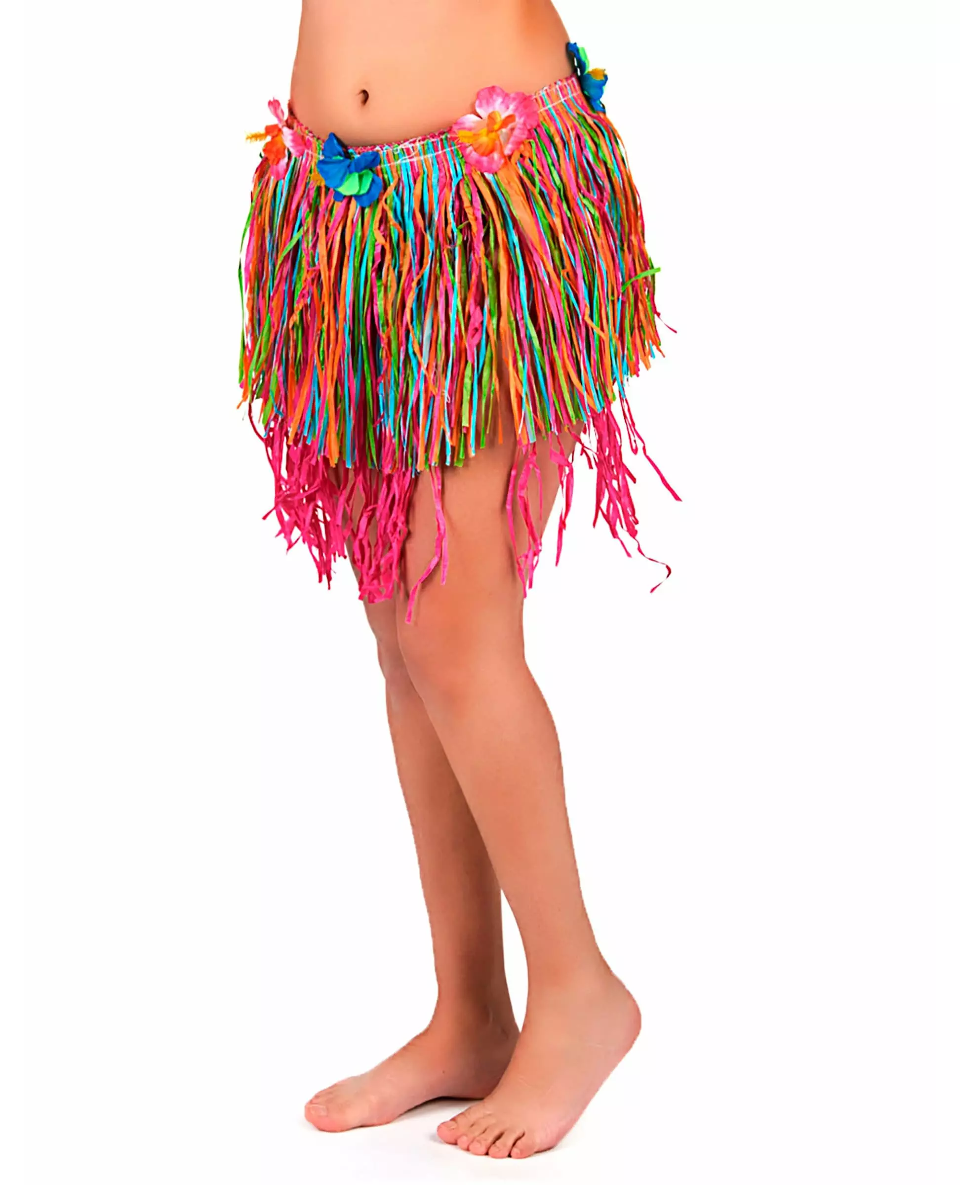 Kort hawaiisk skjørt med blomster for voksne, flerfarget