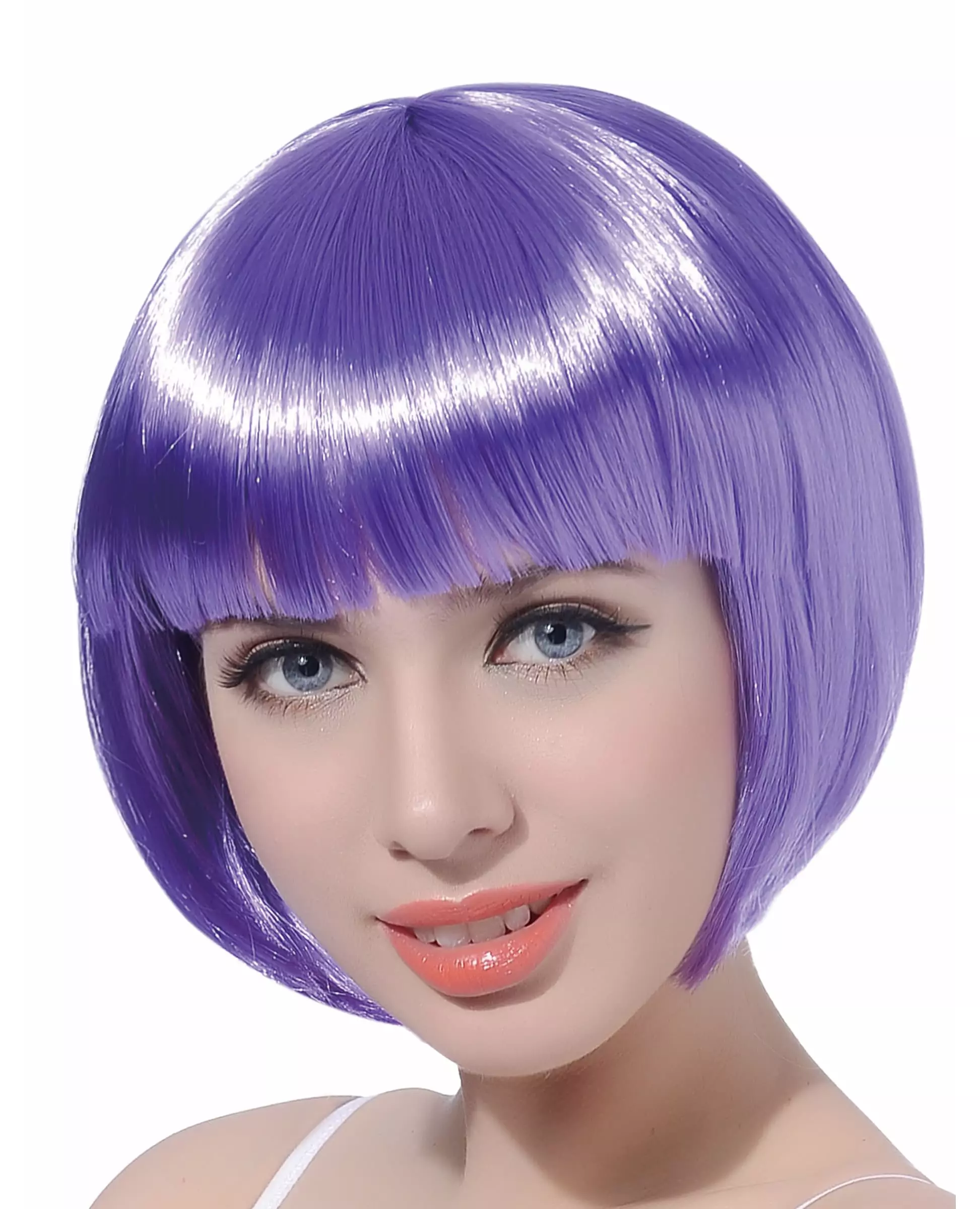 Ta i bruk neon-boben! Denne korte parykken er laget av syntetisk hår. Den er lilla i fargen, og klippet fremkaller en skinnende, glatt bob. En rett lugg vil også pryde pannen din. Denne parykken er det ideelle tilbehøret for å fullføre retro-kostymet ditt under en kostymefest. Inkludert tilbehør: Parykkmateriale: Syntetisk 100 % polyester 100 % polyester