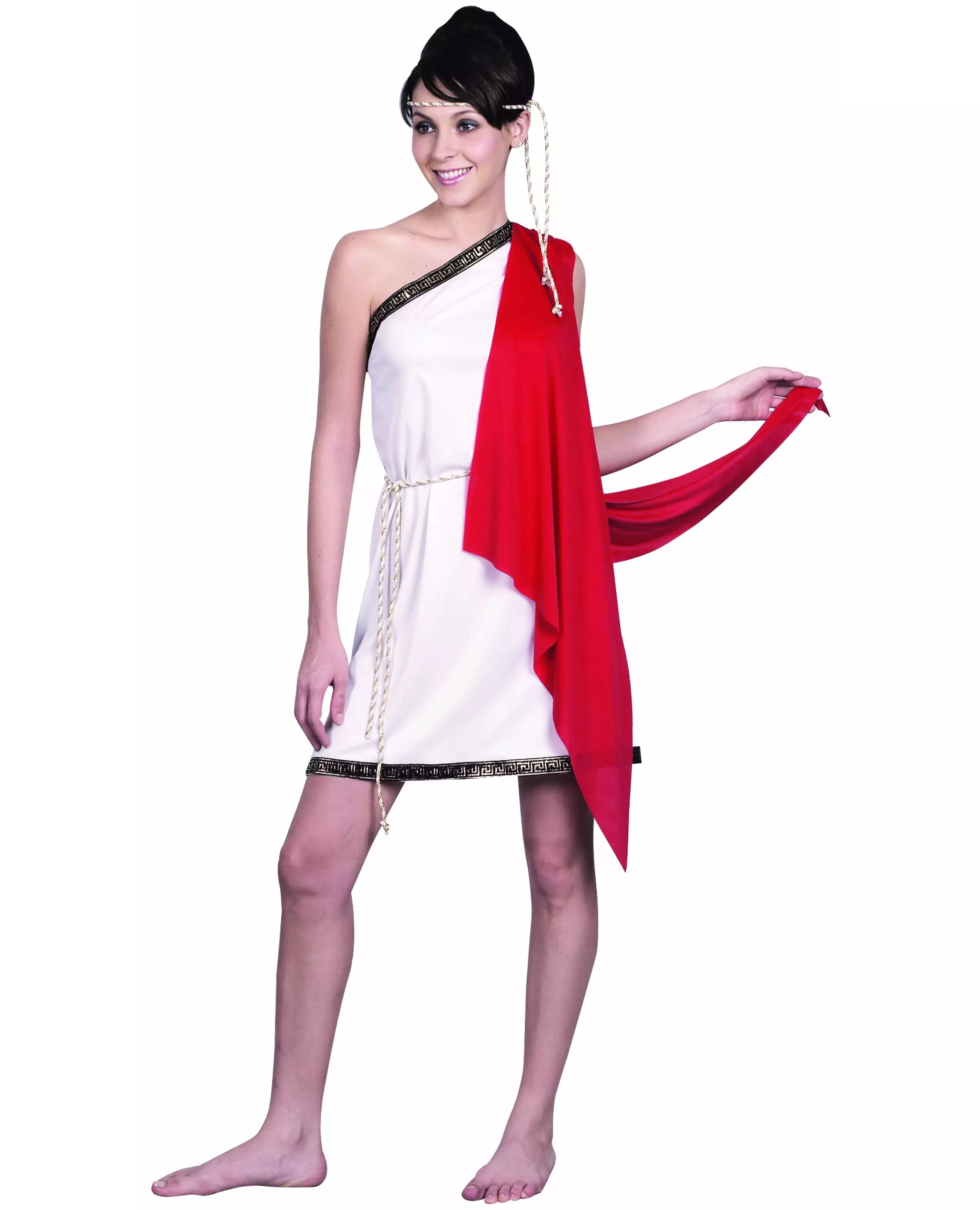 Lett stoff for maksimal komfort! Dette romerske gudinnekostymet for kvinner består av en kjole med en rød kappe på høyre side, et pannebånd og et belte (ring og sko er ikke inkludert). Nederdelen og toppen av kjolen er dekorert med et svart bånd med gullmønstre. Pannebåndet og beltet er flettet med hvitt og gullfarget tau. Dette romerske gudinnekostymet er perfekt for å kle seg ut på en forestilling, et karneval eller en utkledningsfest. Inkludert tilbehør: Dresskappe Pannebånd Belte Materiale: 100 % polyester Vedlikehold: Håndvask