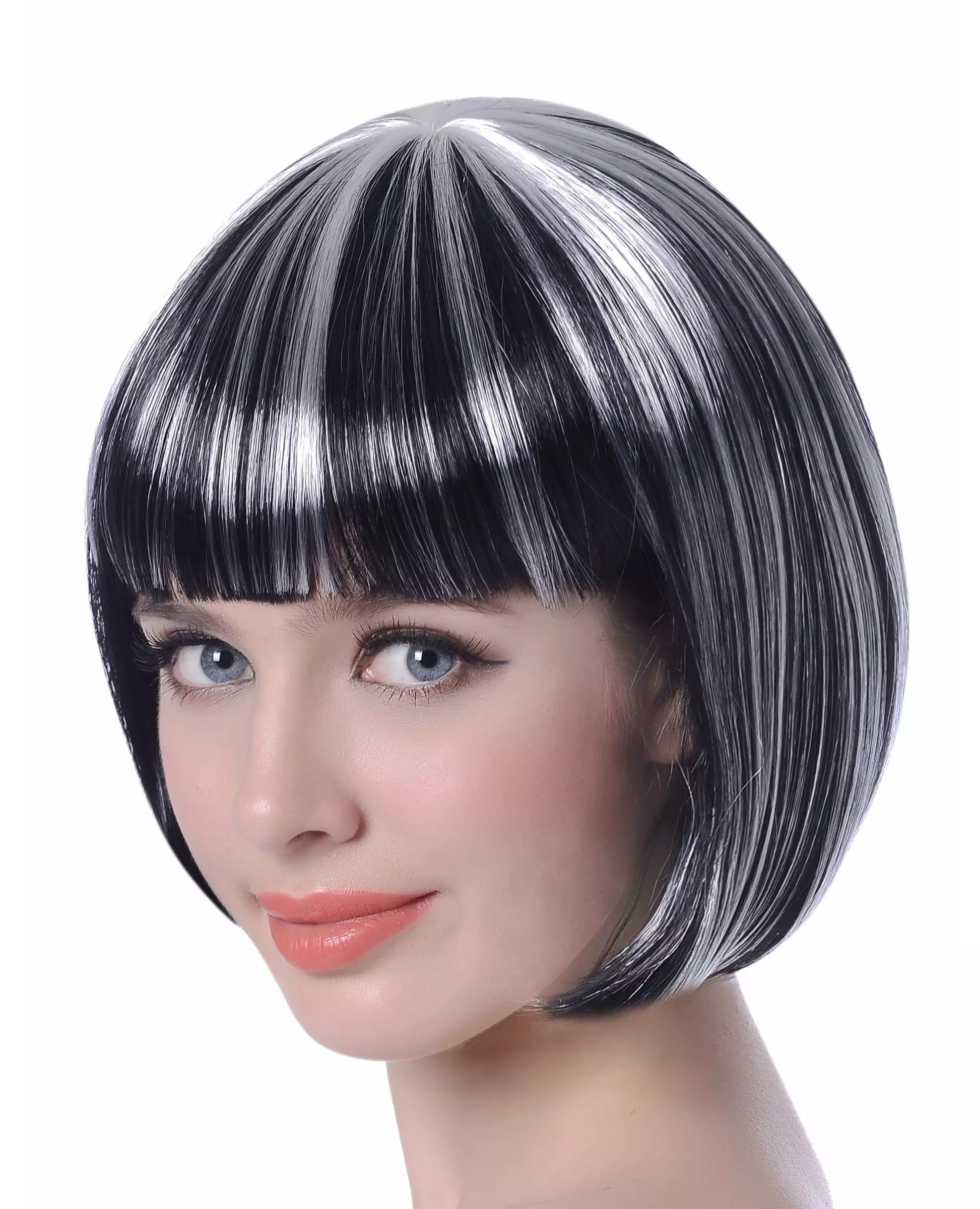 Kort svart og hvit parykk med striper for kvinner