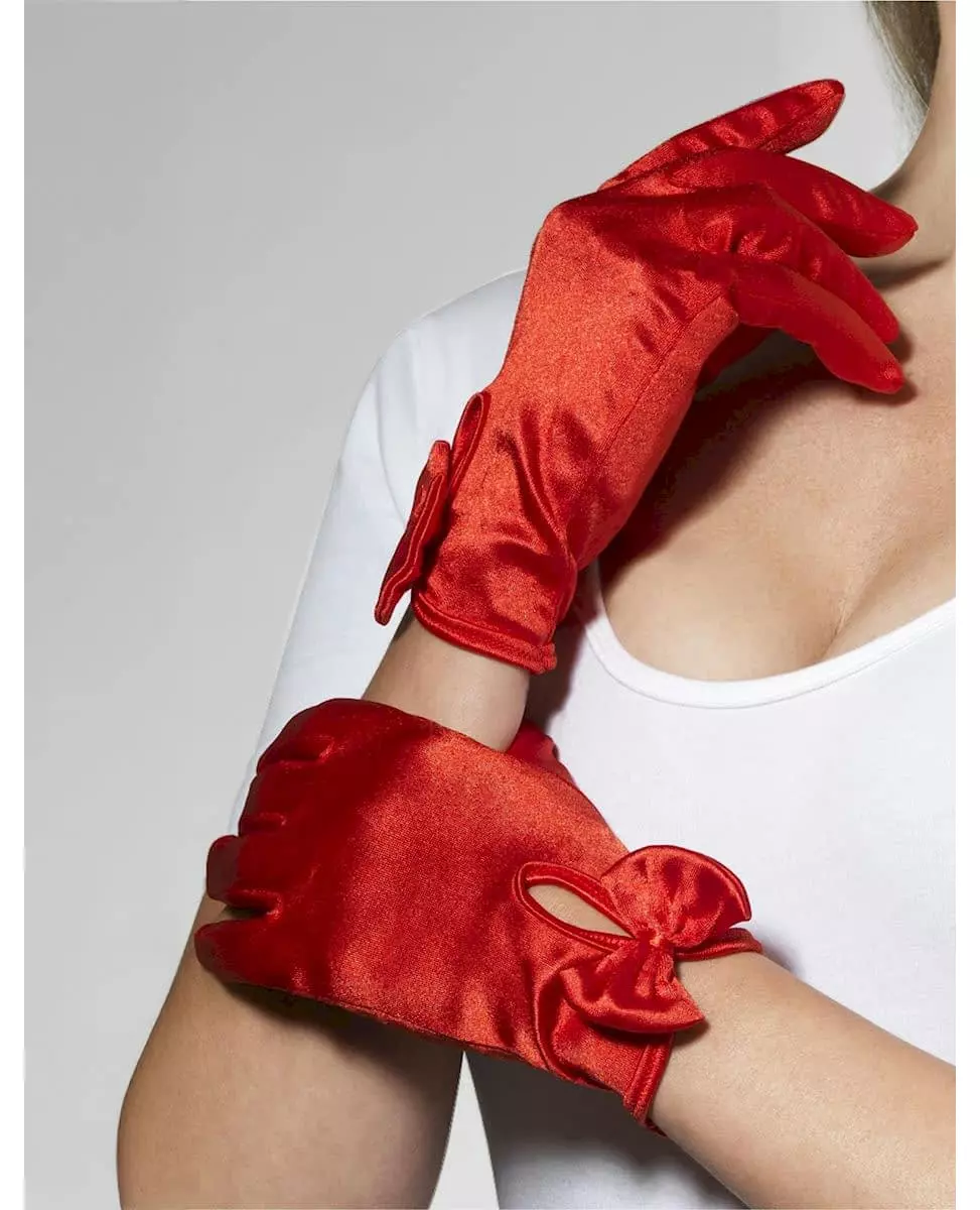 Gi kostymet ditt et preg av farge Disse korte hanskene for voksne er laget av rødt stoff. Det er en liten åpning på oversiden av hånden, ledsaget av en liten sløyfe. Disse røde hanskene vil være perfekte for å fullføre et 40-tallskostyme med eleganse. Inkludert tilbehør: 2 hansker Materiale: 100 % polyester Pleie: Håndvask