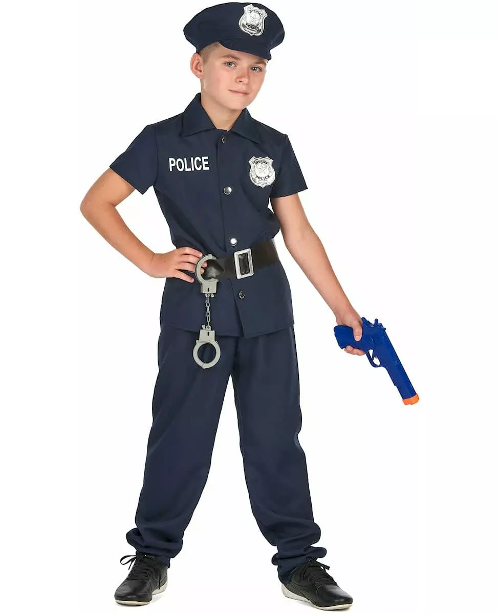 Et politiutseende for actionfylte oppdrag! Forvandle barnet ditt til en ekte politibetjent med dette kortermede politikostymet. Dette komplette kostymet inkluderer en klassisk blå jakke, matchende bukser, et belte og en ikonisk politihatt. Jakken, med sine korte ermer, tilbyr komfort og bevegelsesfrihet, perfekt for imaginære eventyr og jakter. Enten det er for et karneval, en temafest eller rollespill, vil dette kostymet gi barnet ditt evnen til å opprettholde orden med stil og selvtillit. Et ideelt kostyme for spirende små helter! Materiale: 100 % polyester. Inkludert tilbehør: Jakke, bukser, belte, hatt