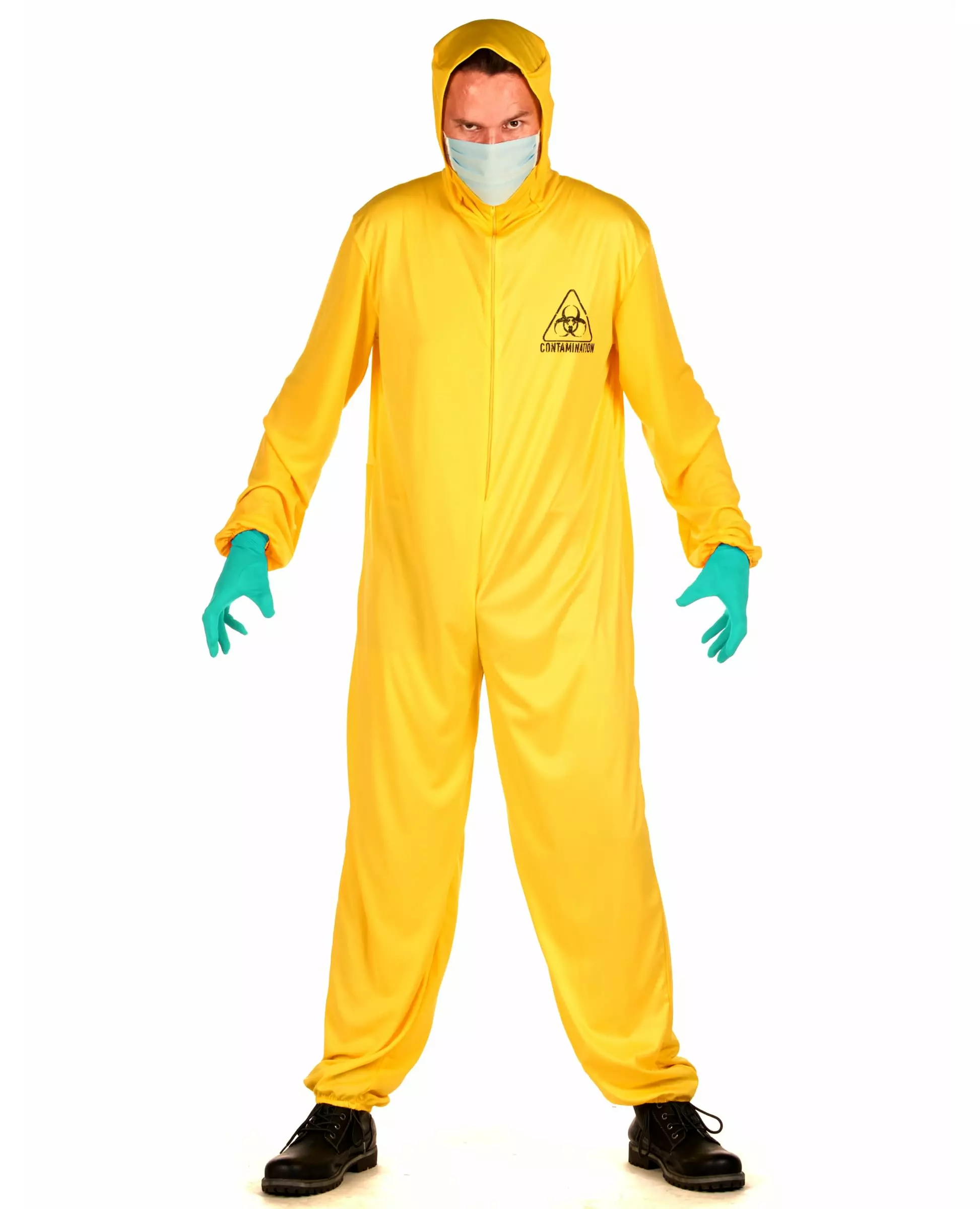 Vær obs på forurensning! Dette forurensningskostymet er for voksne og inneholder en jumpsuit og en maske. Jumpsuiten med lange ermer er gul. Den har en hette i samme farge, et radioaktivitetsdesign og inskripsjonen «forurensning». Masken er en lyseblå halstørklær. Dette forurensningskostymet vil være perfekt for Halloween-festen din! NB: Dette produktet er ikke et helse- eller medisinsk utstyr. Inkludert tilbehør: Jumpsuit-maske Materiale: 100 % polyester Pleie: Håndvask