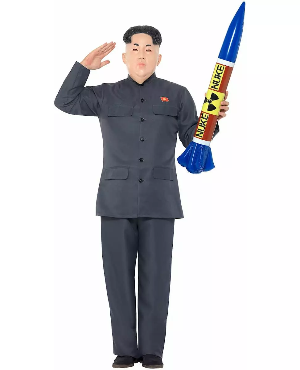 Radioaktivt! Dette koreanske politikerkostymet er for voksne. Det består av en topp og bukser. Toppen og buksene, i grå farge, er Koreas offisielle uniformer. Den grå langermede jakken har fire falske lommer. Den har også et trykk av et falskt rødt koreansk flagg på brystet, faktisk er den trykket med en sint smiley! Buksene er klassiske rettskårne uniformsbukser. Dette nordkoreanske diktatorkostymet, som kan kompletteres med en maske av den samme diktatoren som er tilgjengelig i nettbutikken vår, vil være perfekt for å åpne debatten på kvelder med temaet politikere eller under karnevalet. Inkludert tilbehør: jakke bukser Materiale: Polyester Vedlikehold: Håndvask