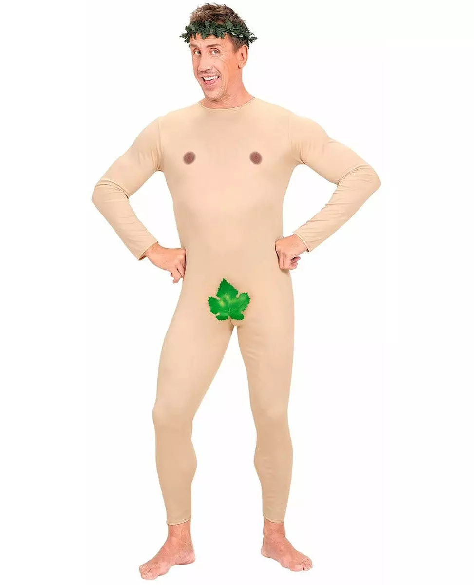 Akkurat som Gud skapte deg! Dette Adam-kostymet for menn består av en beige heldrakt og en laurbærkrans som dekker hele kroppen. Jumpsuiten har en tettsittende passform for best å gjengi illusjonen av nakenhet. Den er dekorert med et vinblad som tjener til å skjule de maskuline egenskapene. Kostymet er komplett med en krone laget av falske grønne laurbærblader. Dette kostymet vil være perfekt for en fest med De syv dødssyndene som tema eller til et utdrikningslag! Inkludert tilbehør: Laurbærkransjumpsuit Materiale: 100 % polyester Vedlikehold: Håndvask