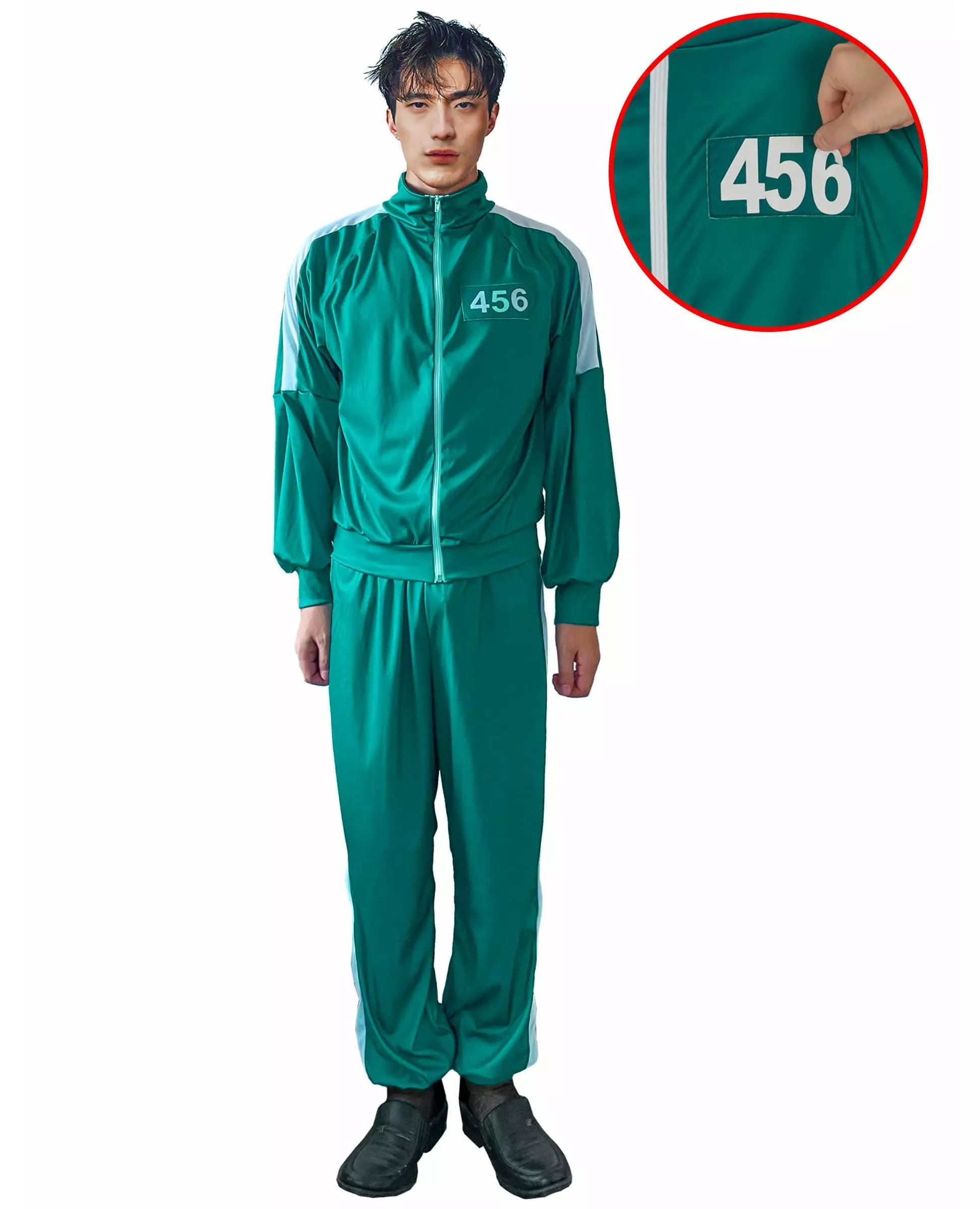 Måtte den beste spilleren vinne! Dette deltakerkostymet med tilpassbart nummer er for voksne. Det inkluderer en trykt jakke og bukse. Jakken er grønn med hvite linjer på den øvre delen på skulderhøyde. Den er elastisk i endene av ermene og lukkes enkelt med en sentral glidelås. En av de spesielle funksjonene ved denne jakken er at du kan tilpasse identifikasjonsnummeret ditt for å få et unikt nummer takket være et ark med klistremerker. Kostymebuksene er også grønne og har elastisk i endene av bena. Delta i det berømte koreanske spillet og bli en nøkkelspiller på en kostymefest som karneval eller nyttår! Tilbehør inkludert: Jakke Bukser Klistremerkeark Materiale: 100 % polyester Vedlikehold: Håndvask