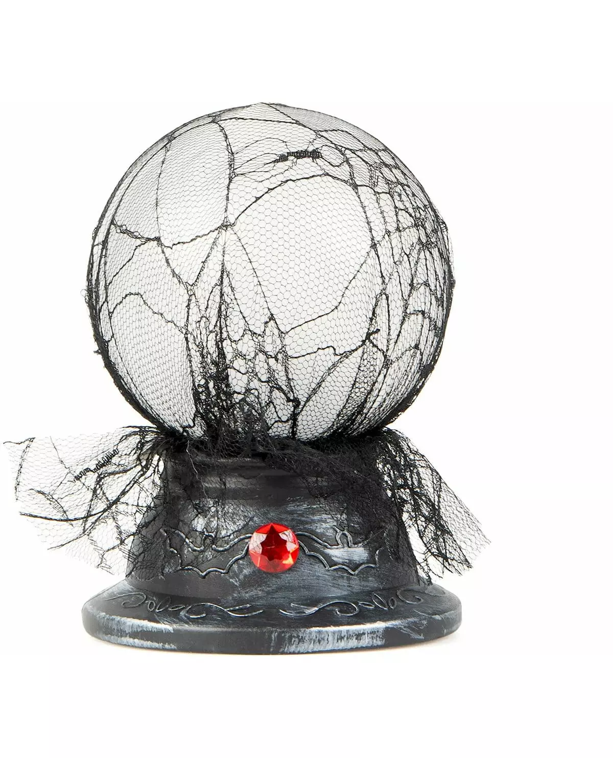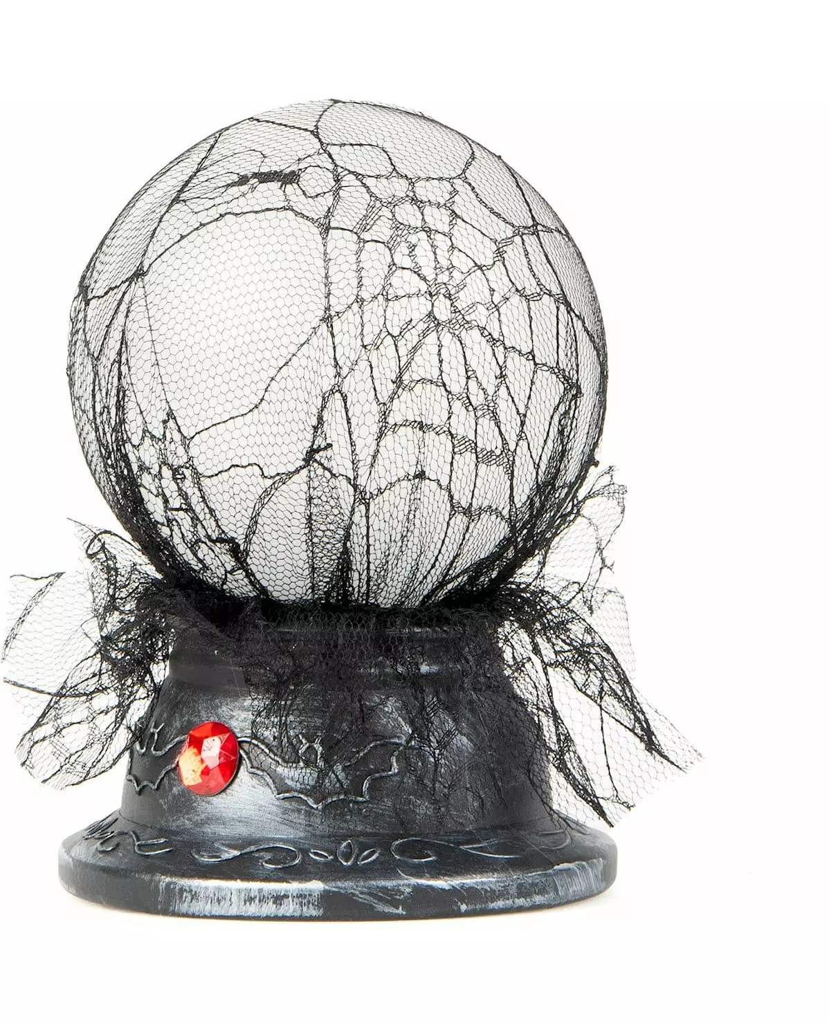 Finn frem din klarsynte gave til Halloween! Denne krystallkulen med lys og lyd måler omtrent 19 x 13 cm. Denne animerte dekorasjonen har en base i metall med alderen sølv, dekorert med en rød, kunstig diamant. Den er også utsmykket med et gjennomsiktig, svart slør. Den lyser opp i blått og deretter hvitt, og avgir skumle lyder som vil gi deg gåsehud...! Denne krystallkulen er ideell for å perfeksjonere en interiørdekorasjon under Halloween-festen din! Inkludert tilbehør: 1 krystallkule Materiale: Plast