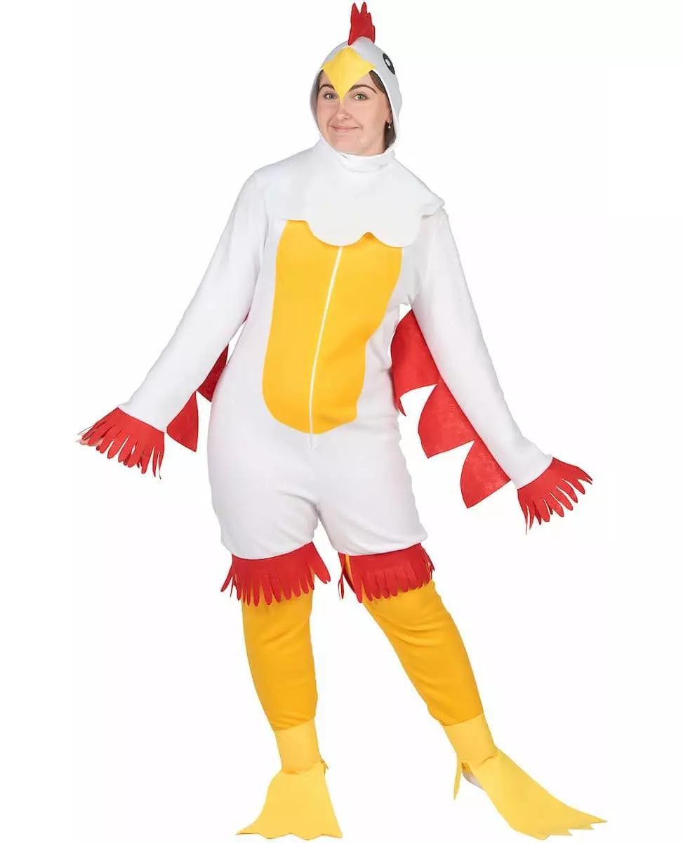 Et hysterisk morsomt kostyme for tullete og sprø øyeblikk! Dette kyllingkostymet for voksne er perfekt for å legge til litt humor på utkledningsfestene dine! Det inkluderer en myk hvit jumpsuit med røde vinger sydd i livet, noe som gir et autentisk og morsomt utseende. En praktisk glidelås foran gjør det enkelt å ta på. De gule skotrekkene gir kyllingens ben den siste finishen, mens hodeplagget fullfører antrekket ved å imitere et kyllingansikt, inkludert våpenskjoldet! Ideelt for karneval, en temafest eller enhver anledning der du vil overraske og få folk til å le, vil dette kostymet forvandle deg til kveldens uunnværlige stjerne. Inkludert tilbehør: Jumpsuit Skoovertrekk Hodeplagg Materiale: 100 % polyester