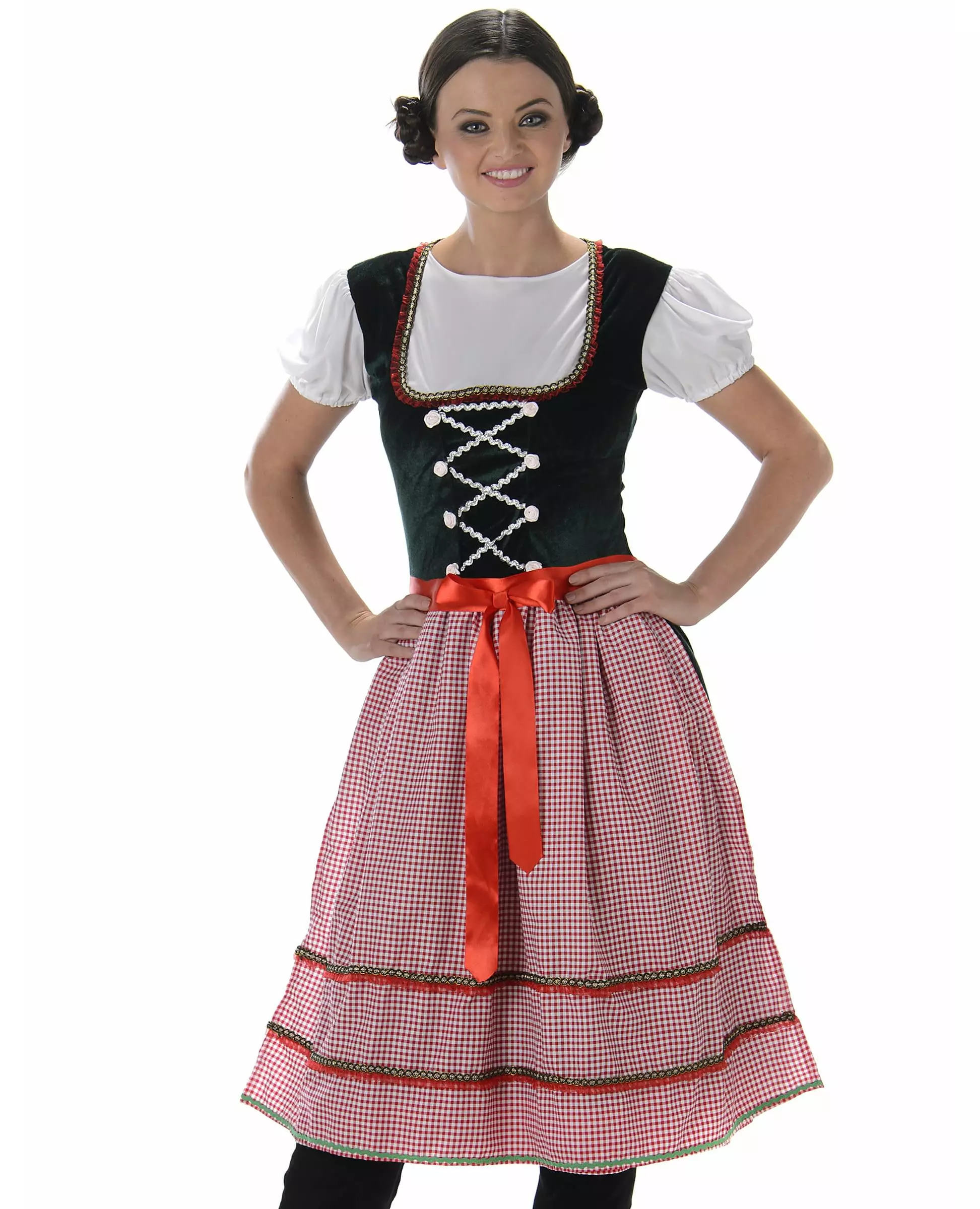 Få et bayersk preg på Oktoberfest! Dette bayerske kostymet for kvinner består av en kjole og et belte. Kjolens overdel er grønn med korte, hvite puffermer. Det er hvit, fusket snøring foran. Et belte vil markere midjen din. Dette bayerske kostymet vil være perfekt for deltakelse i den berømte Oktoberfesten eller karnevalet. Inkludert tilbehør: Kjole Belte Materiale: 100 % polyester Stell: Håndvask Målinformasjon: - XS anbefales for en midjemål på 62 til 65 cm. - S anbefales for en midjemål på 68 til 70 cm. - M anbefales for en midjemål på 74 til 78 cm. - L / STD anbefales for en midjemål på 82 til 87 cm. - XL anbefales for en midjemål på 91 til 97 cm.