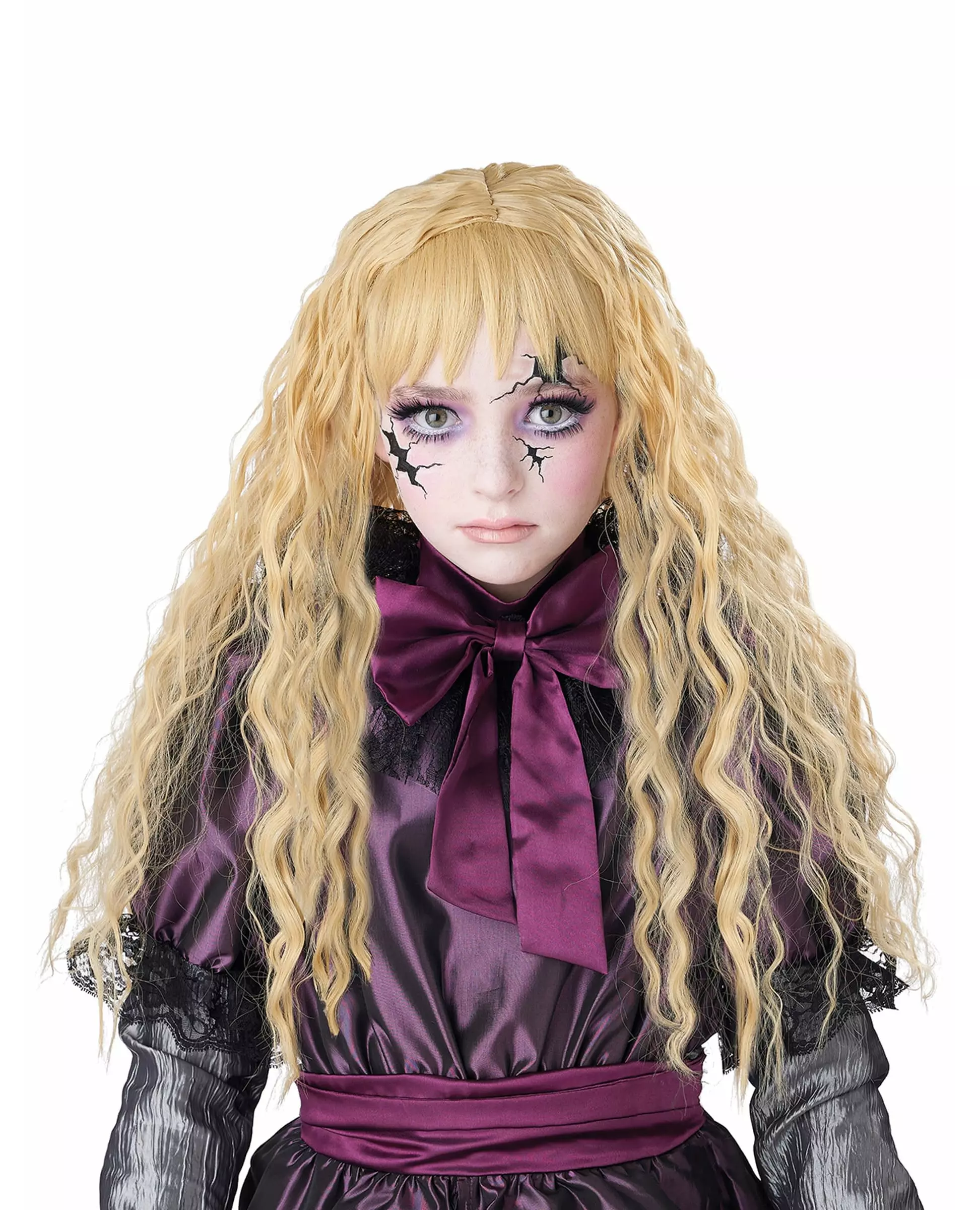 Lang, bølget, blond barneparykk inkluderer: Parykk.