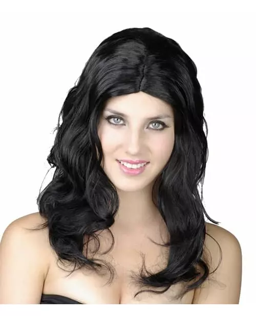 Bølgete effekt! Denne vakre parykken har bølget svart hår. Håret er langt og strekker seg til midten av ryggen. Denne parykken vil være perfekt for å forbedre kostymet ditt på karnevalsdagen eller til en utkledningsfest. Inkludert tilbehør: Parykkpleie: Håndvask