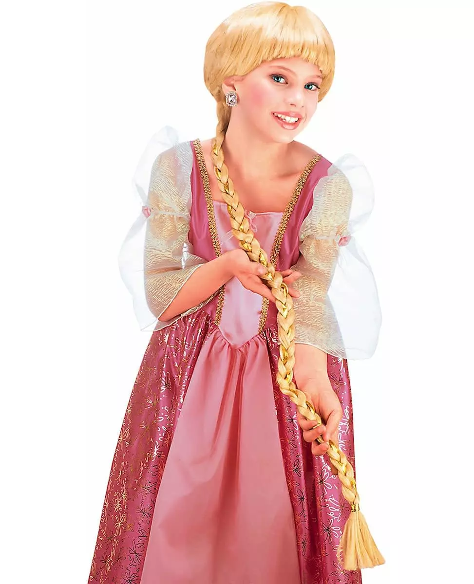 Med et gyllent bånd flettet inn i fletten! Denne lange prinsesseparykken for jenter er blond med rett pannelugg og en lang flette på ca. 90 cm der et skinnende gyllent bånd er flettet (kun parykken er inkludert). Dette tilbehøret, levert med sitt beskyttende nett, vil være ideelt for å fullføre et prinsessekostyme på karnevalsdagen eller på en utkledningsbursdagsfest. «Copyright Widmann SRL». «Copyright Widmann SRL. Materiale: 100 % polyester 100 % polyester