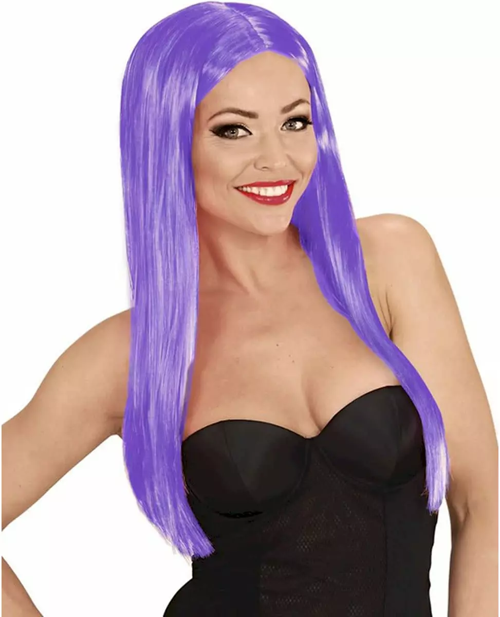 Veldig lang parykk! Denne lange parykken er lilla. Uten pannelugg faller den nedenfor brystet og har midtdel. Denne parykken vil passe godt til et glamorøst kostyme. © Copyright Widmann SRL. Inkludert tilbehør: Parykkmateriale: Syntetisk 100 % polyester 100 % polyester
