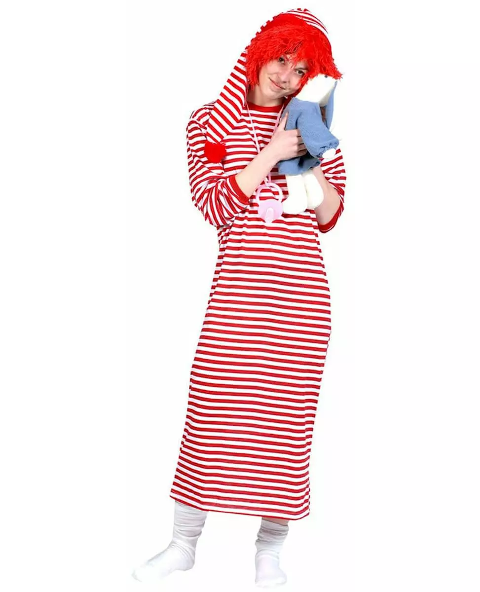 En flott lang stripete kjole! Denne kjolen er for voksne. Denne lange kjolen har lange ermer. Den er stripete i rødt og hvitt. Som bildet indikerer, vil denne kjolen være perfekt for å fullføre klovneantrekket ditt, for eksempel! Inkludert tilbehør: T-skjorte Materiale: 100 % bomull Pleie: Håndvask